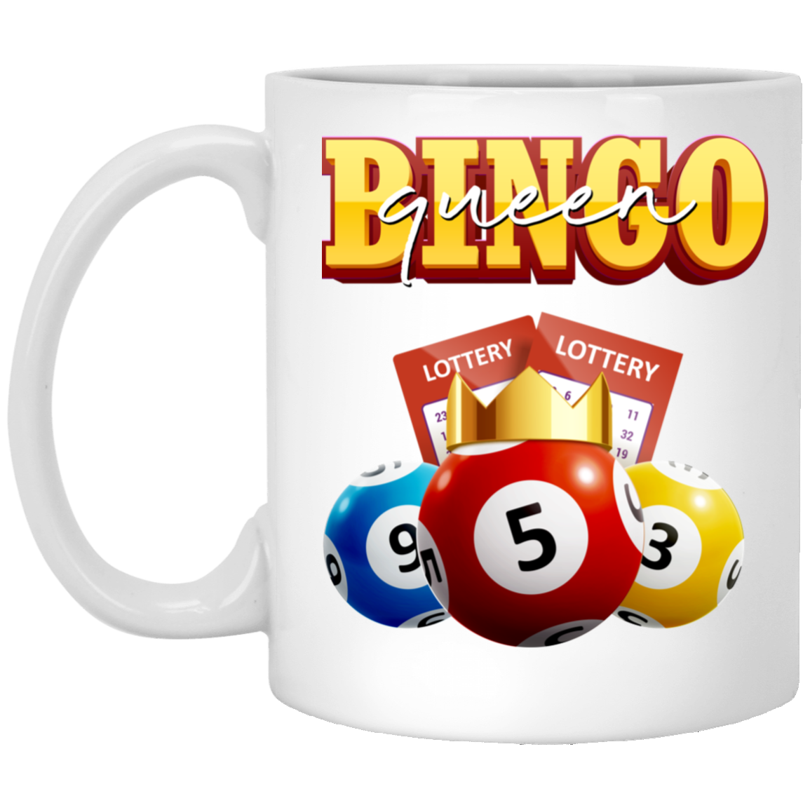 Bingo Queen, Love Bingo, Lottery Ticket, Win Lottery White Mug