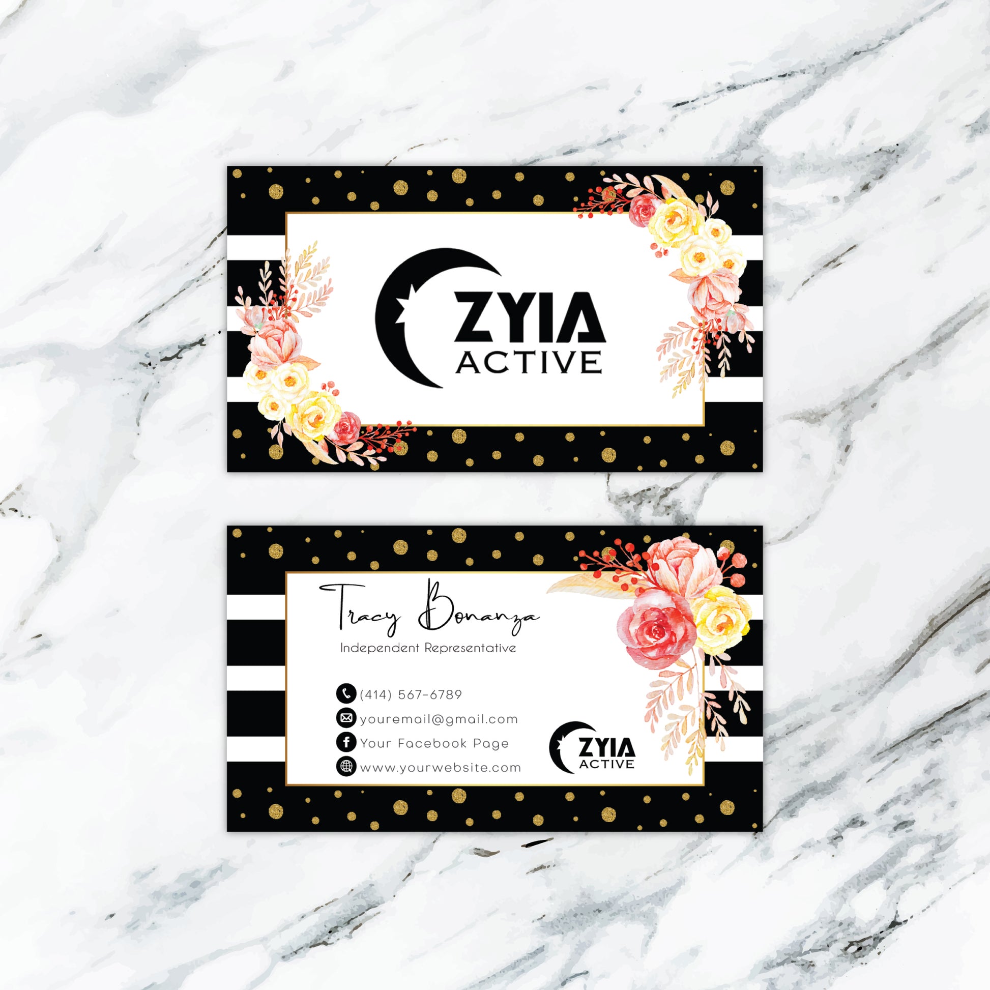 Black Floral Zyia Business Card, Luxury Zyia Cards, Style Personalized Zyia Active Cards ZA06