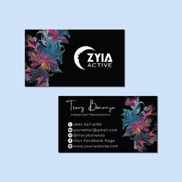 Black Luxury Zyia Business Card, Colorful Floral Personalized Zyia Active Cards ZA05