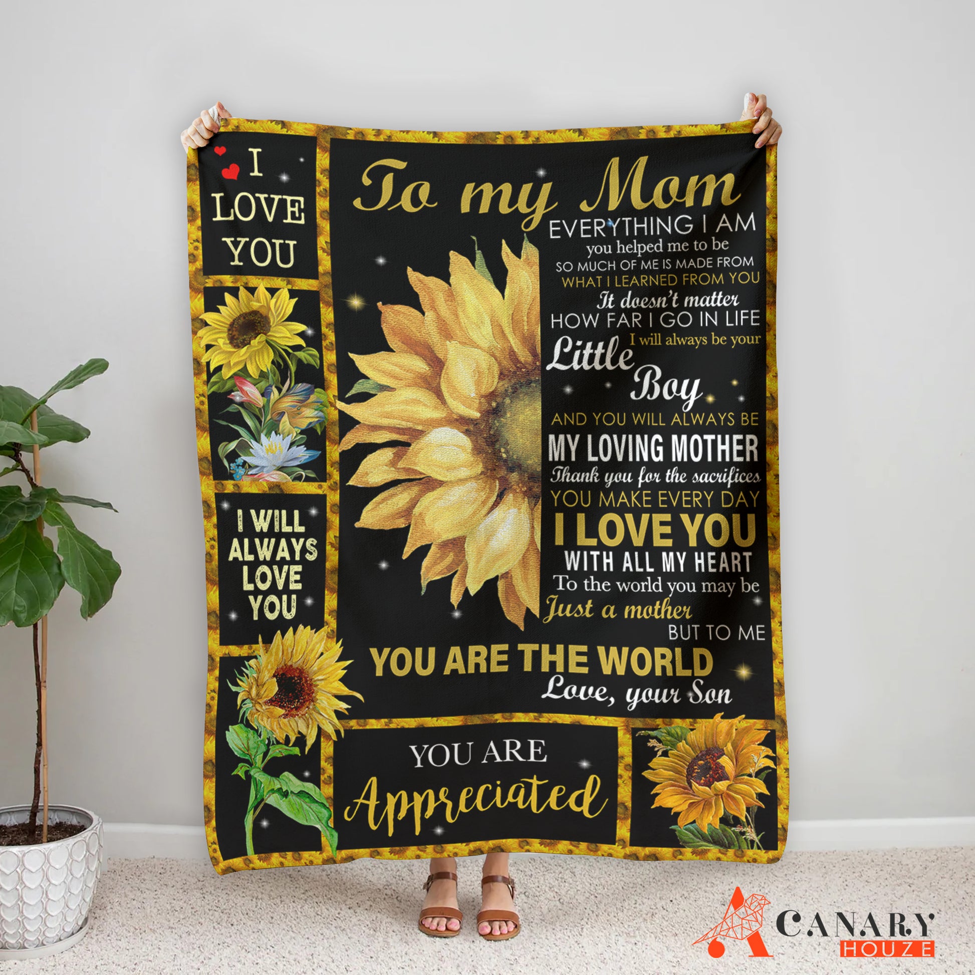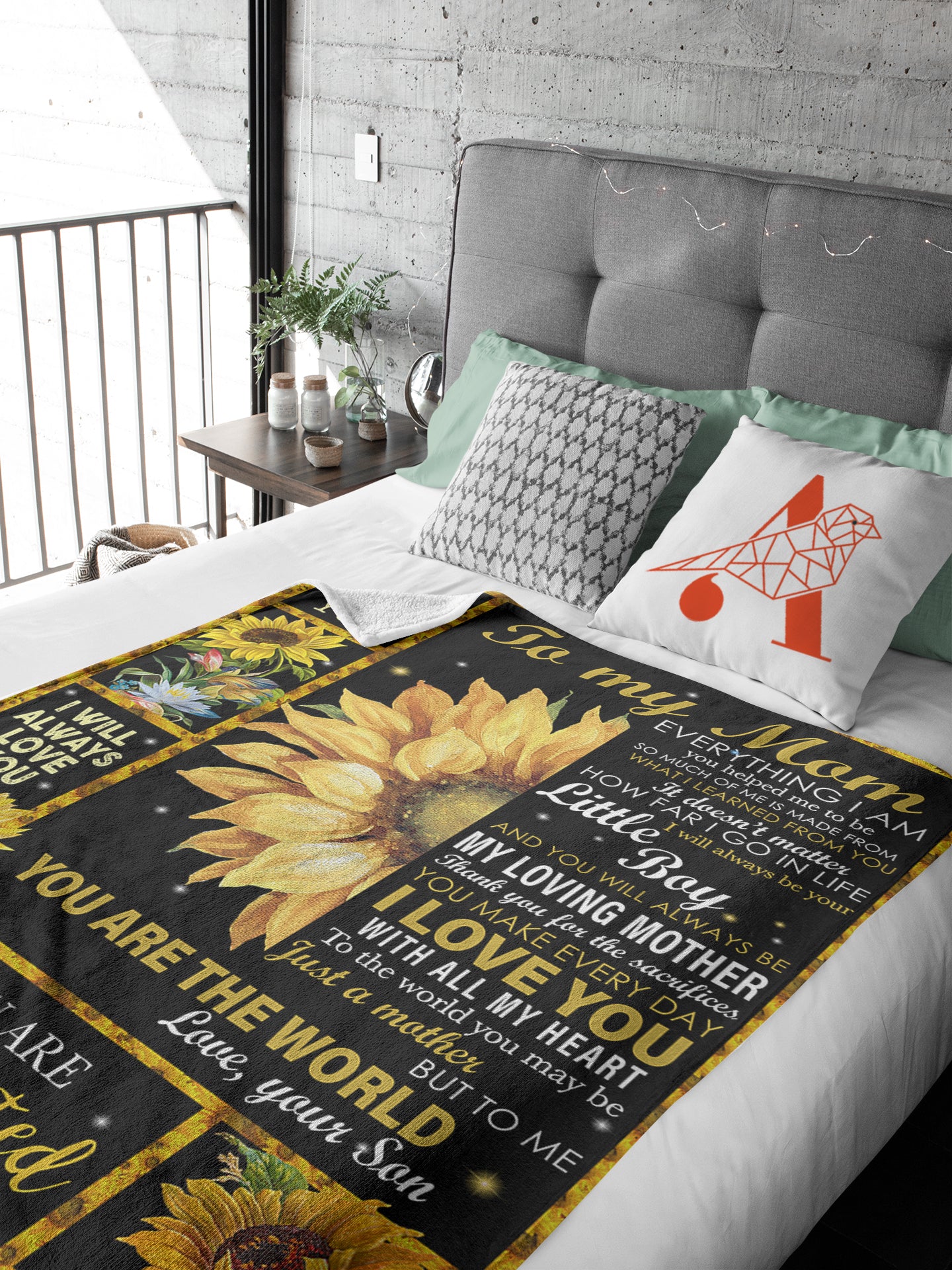 Blanket Gift For Mom, Mother's Day Gift, Love My Mom, Love Sunflower Blanket BL160