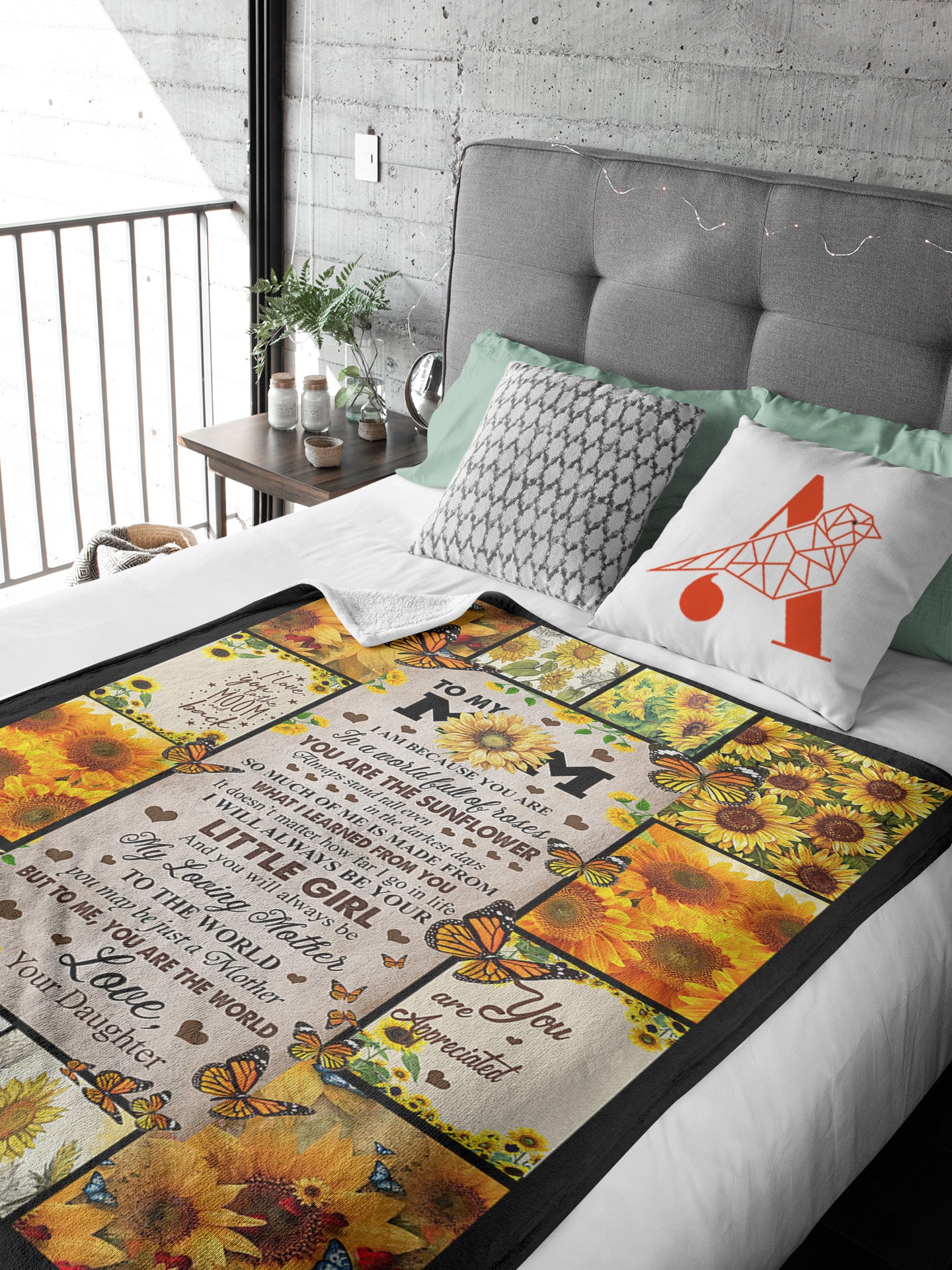 Our Blanket Gift For Mom, Mother's Day Gift, Love My Mom, Sunflower World features a beautiful sunflower pattern, made from incredibly comfortable and soft fabric. Perfect for any mother, this blanket will be sure to bring a warm and comforting feeling to your home.