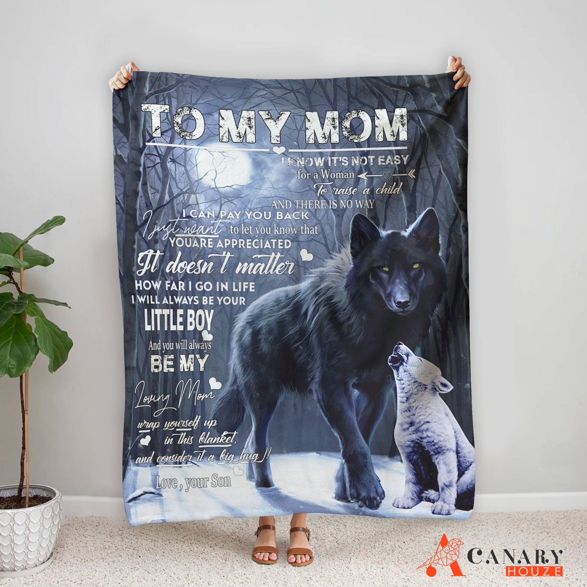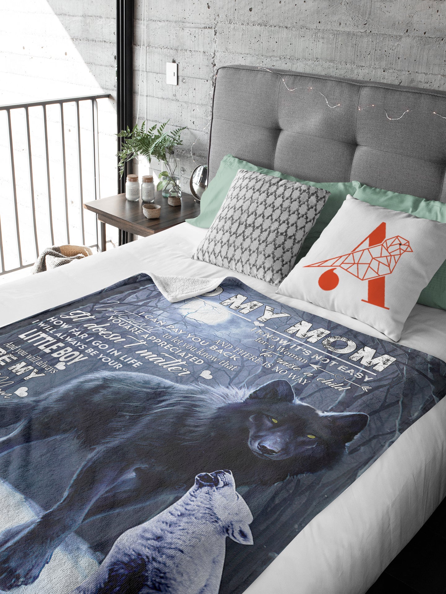 Blanket Gift For Mom, Mother's Day Gift, Love My Mom, Wolf Mom Gift BL155