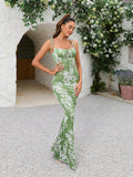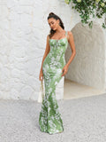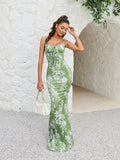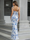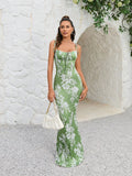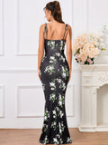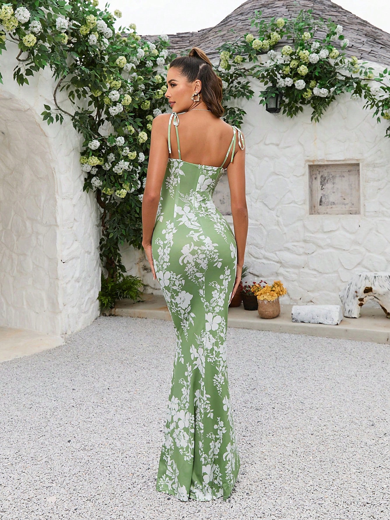 Blooming Beauty: Floral Print Tie Shoulder Mermaid Hem Maxi Cami Dress
