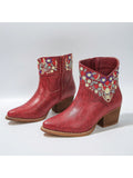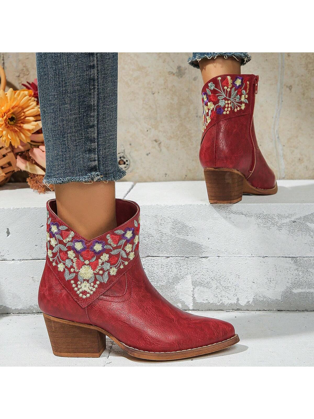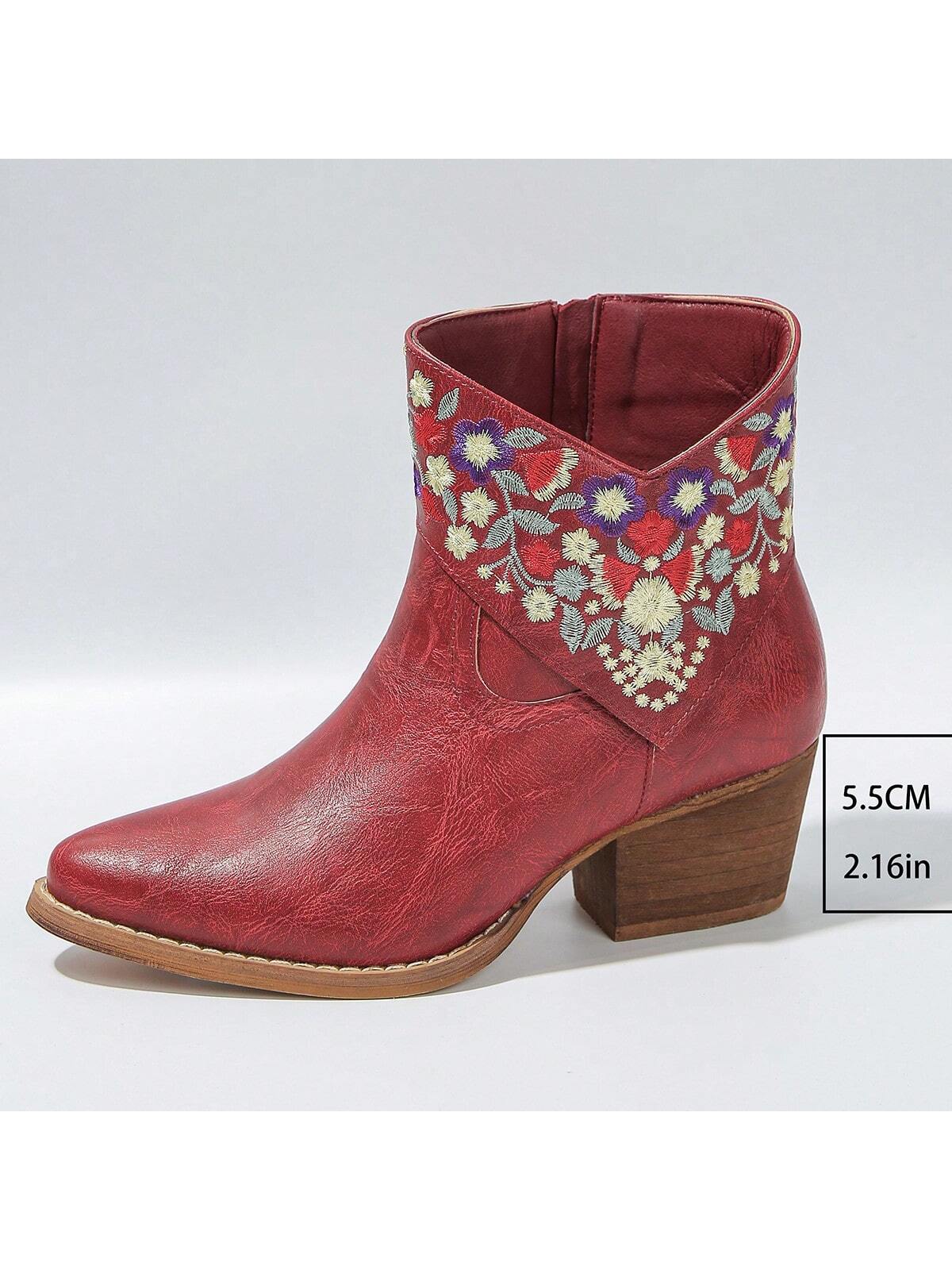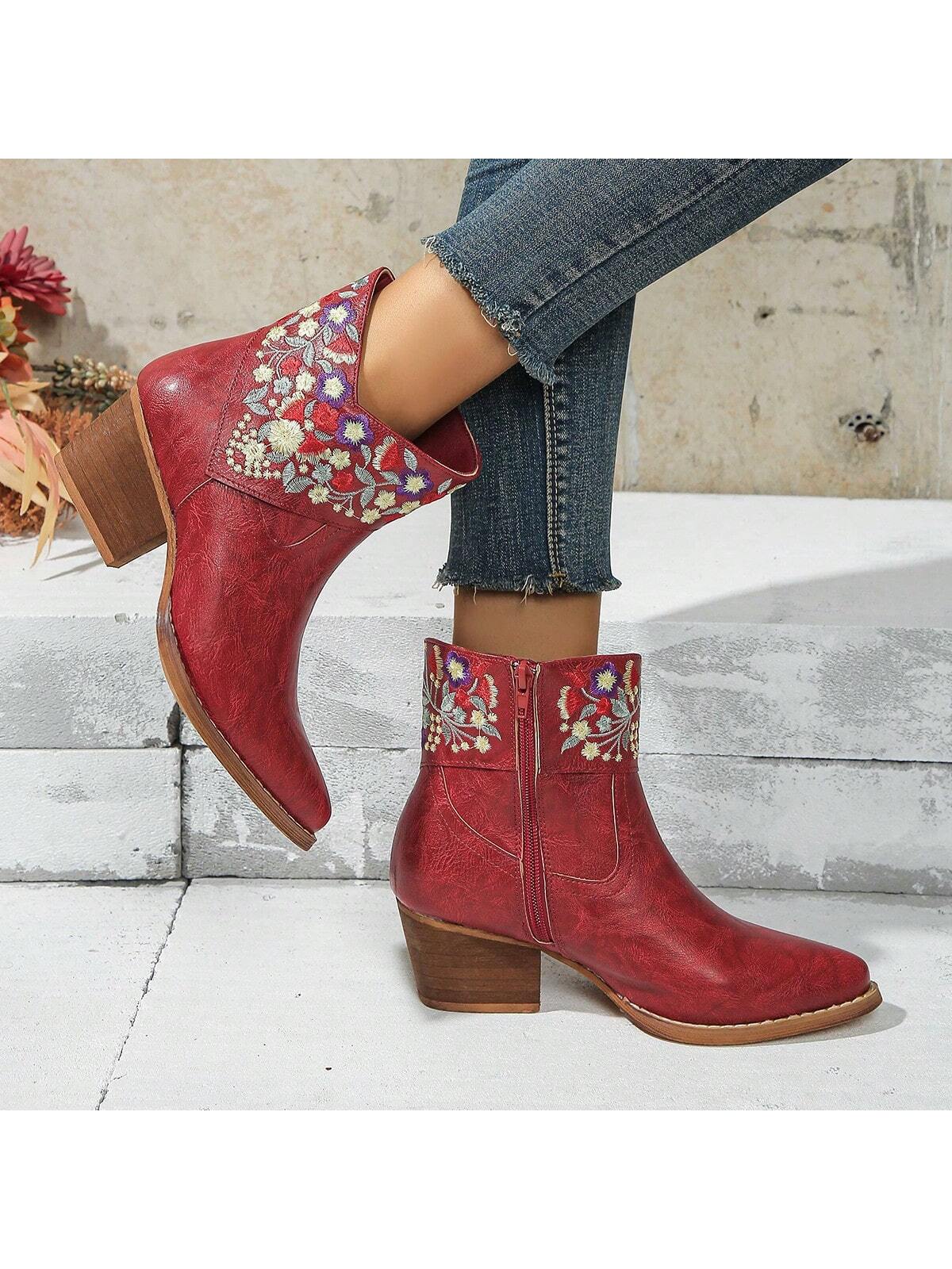 Blooming Style: Women’s Colorful Floral Wedge Heel Short Boots with Side Zipper