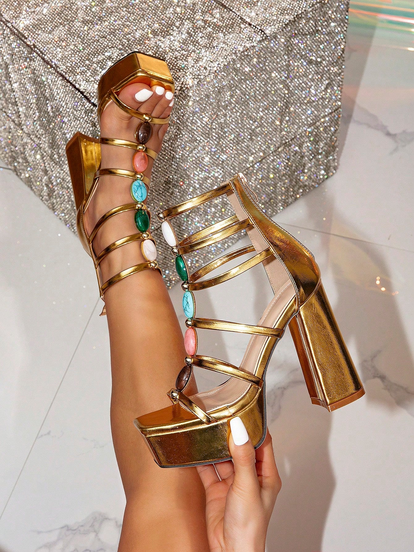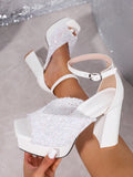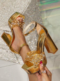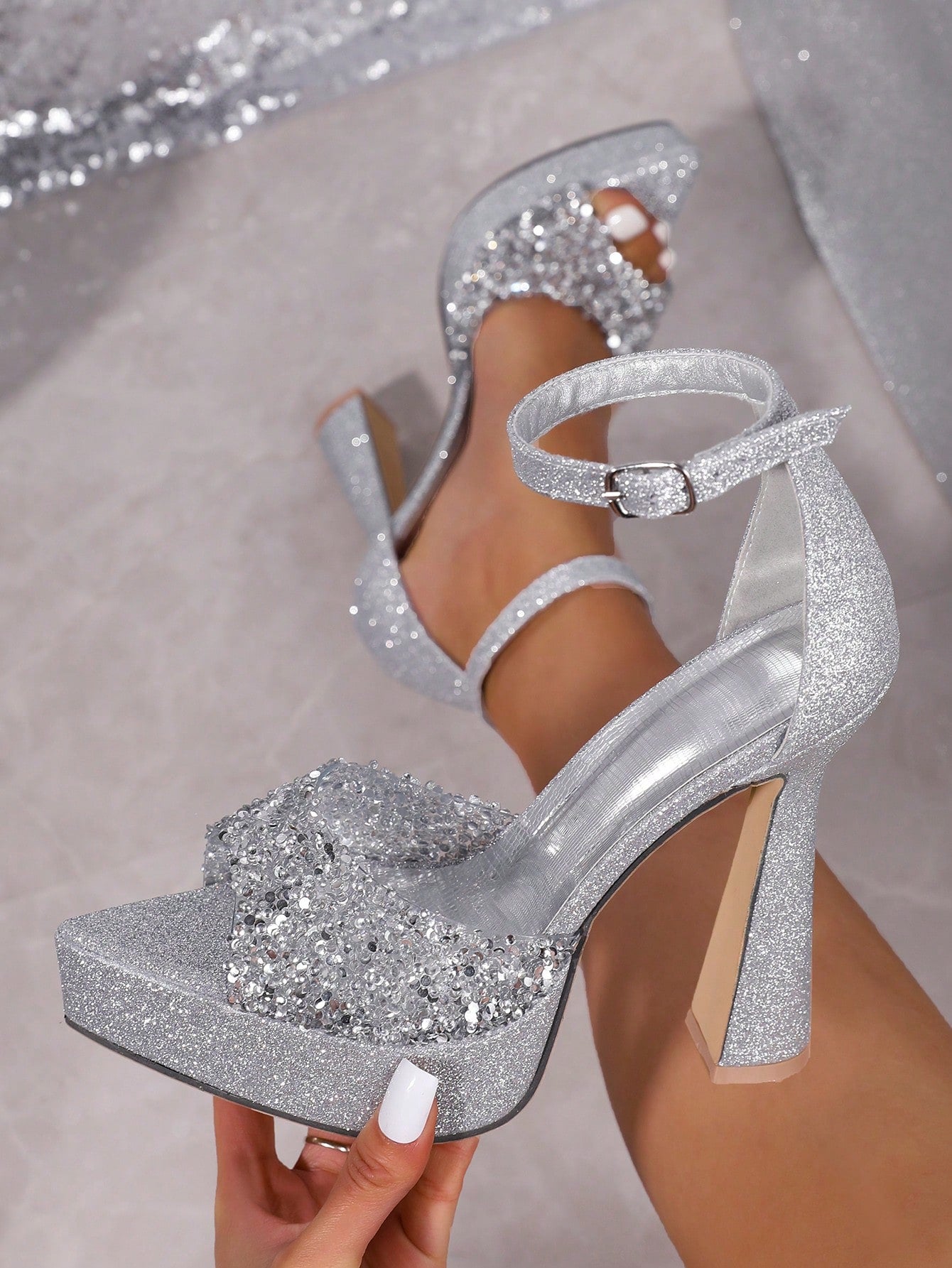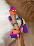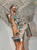 Blue Shiny Iridescent High Heel Sandals: Elevate Your Style with Super High Platform!