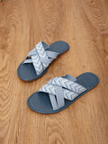 Blue Vacation Chic: Women's Crossed Multi-Strap Flat Sandals