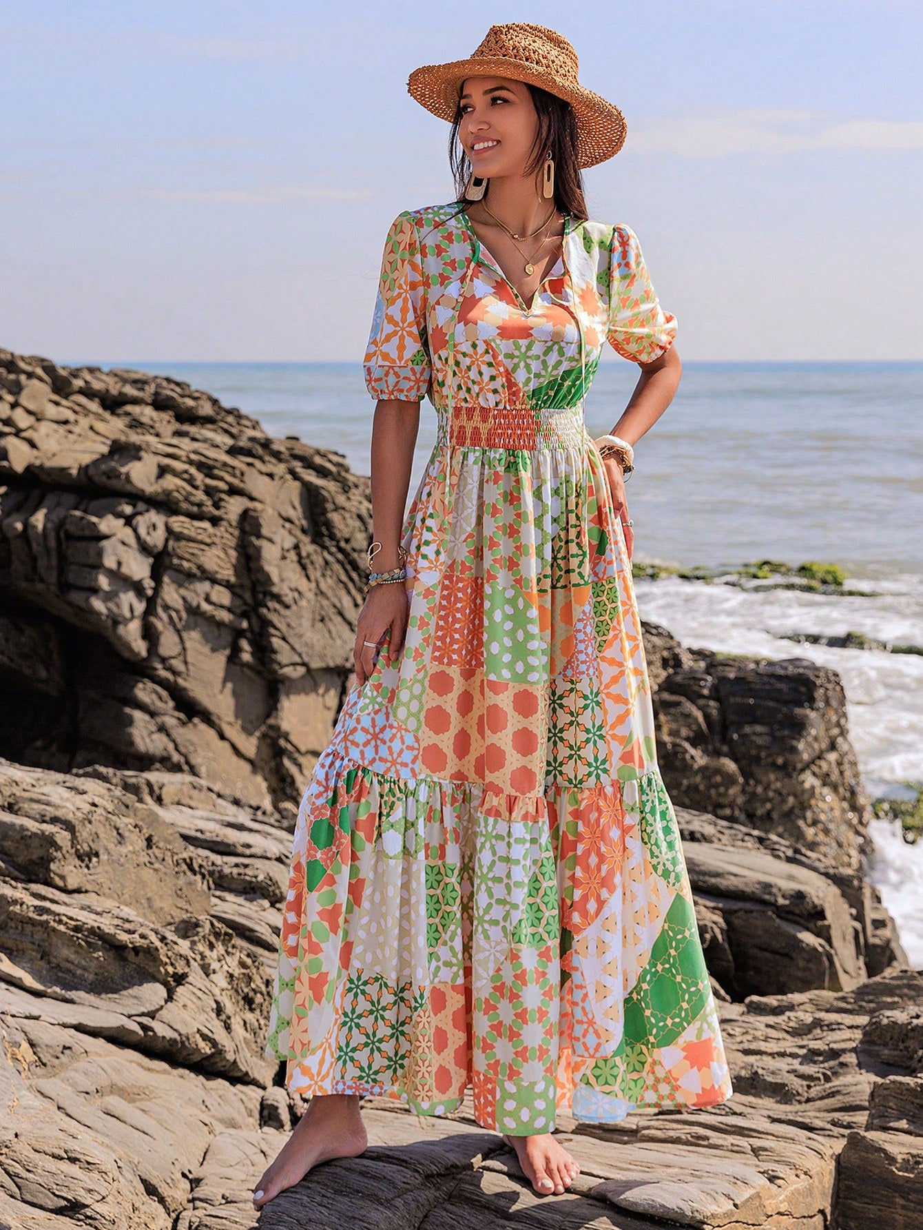Bohemian Bliss: Floral Pattern Printed Women's Vacation Dress
