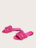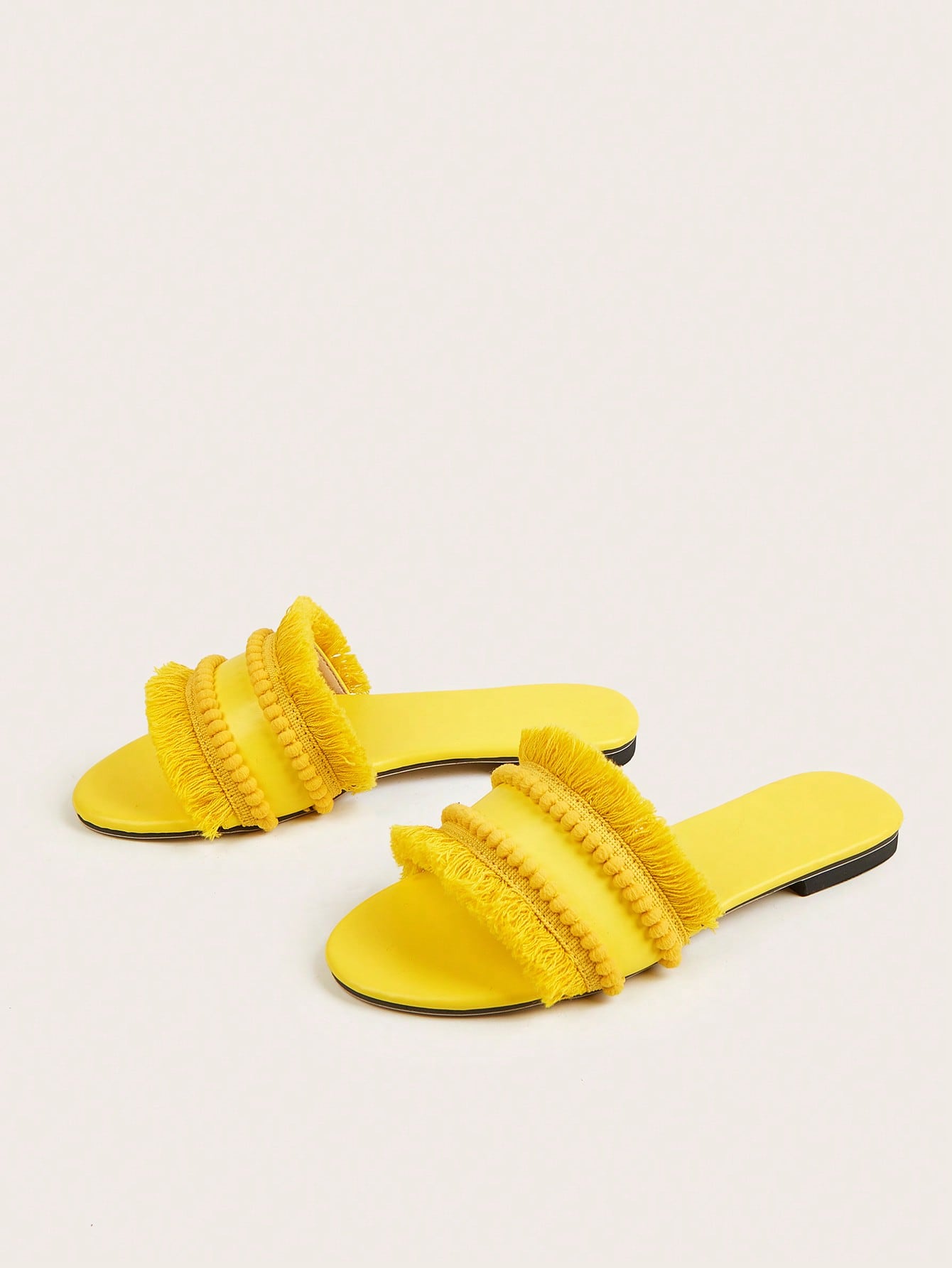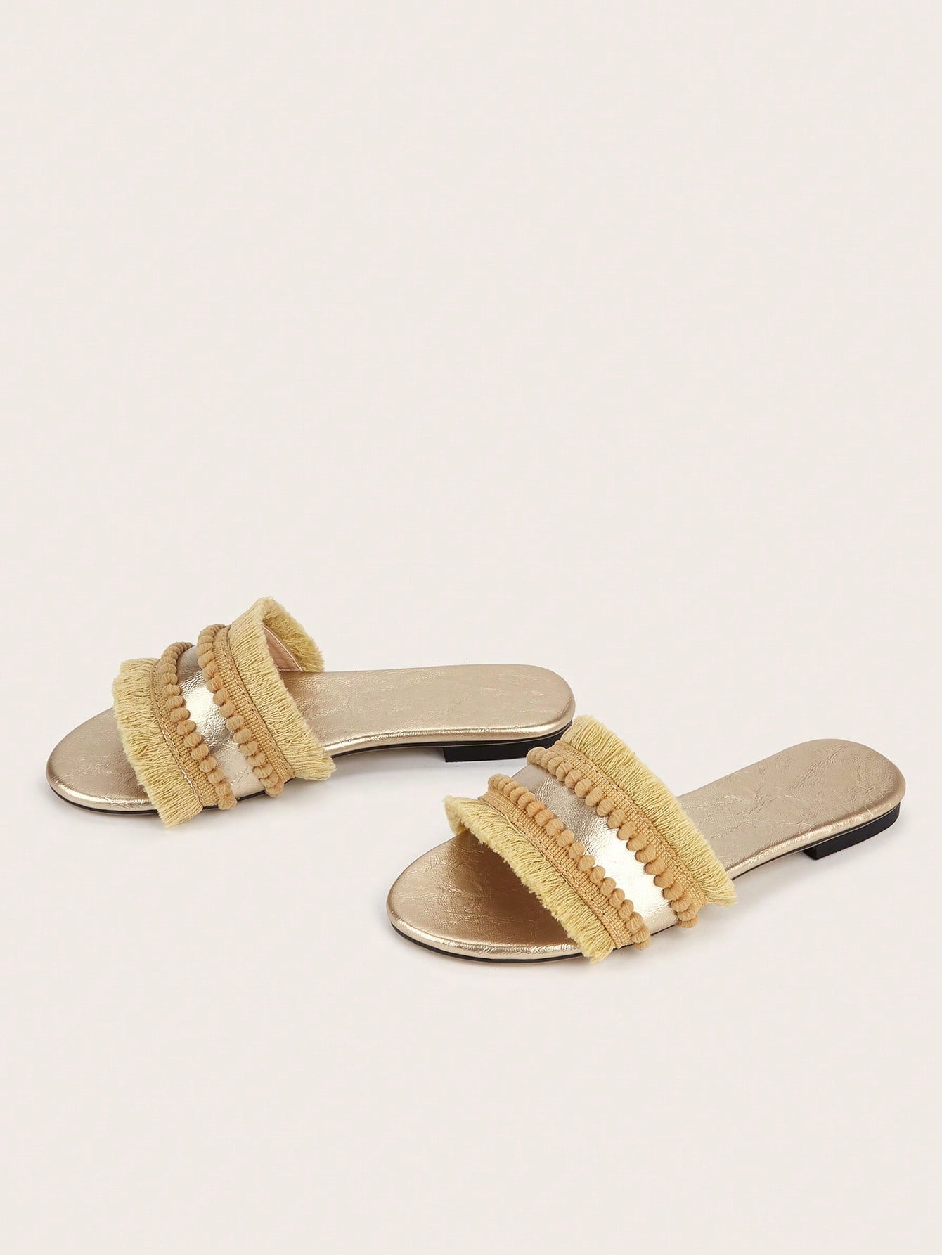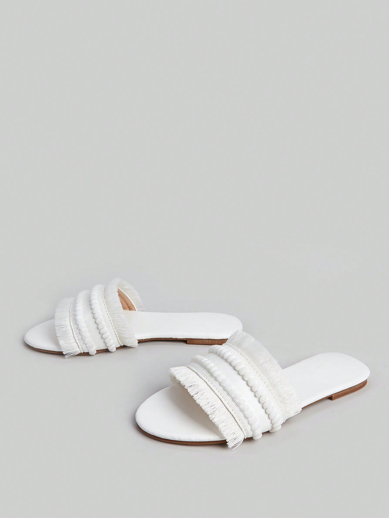 sandals. Made with multicolor woven straw and adorned with tassel accents, these sandals will add a playful touch to any outfit. With a comfortable fit and expert craftsmanship, these sandals are perfect for any bohemian fashionista."