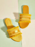 Bohemian Bliss: Multicolor Woven Straw Tassel Sandals