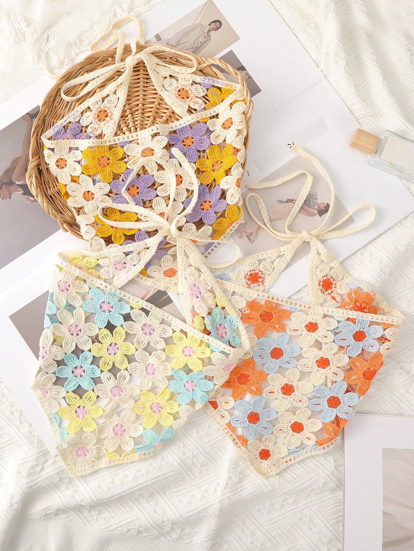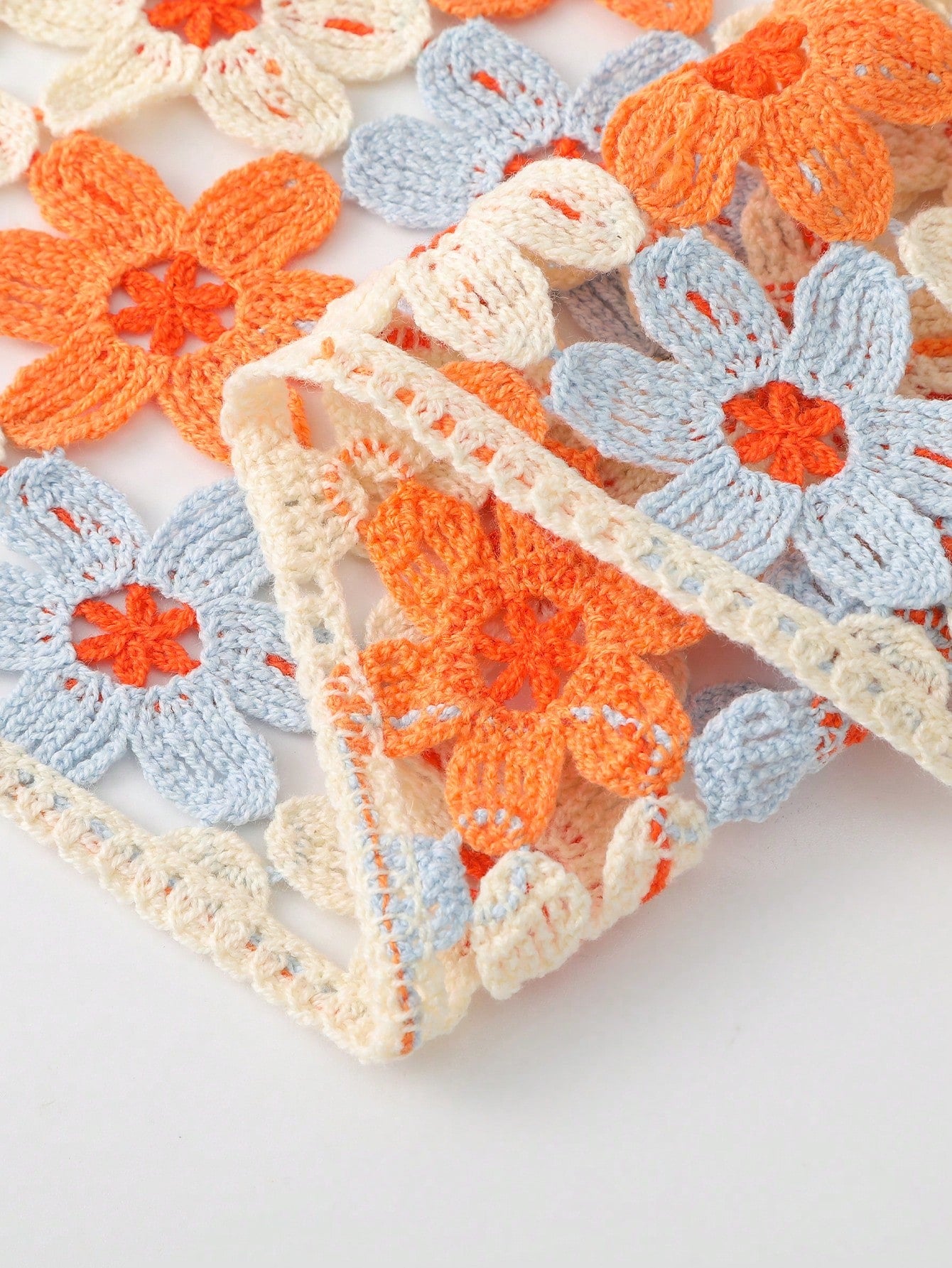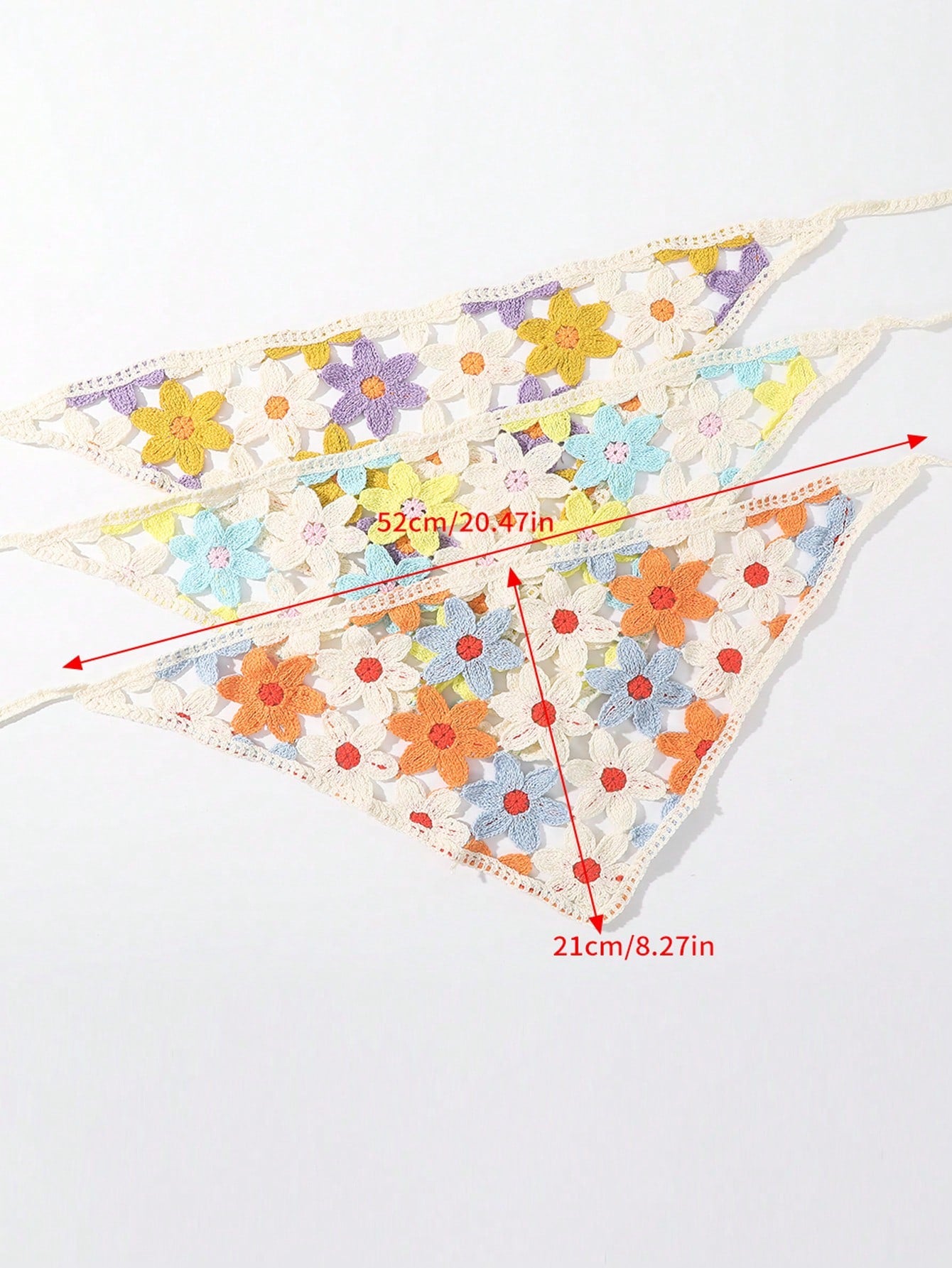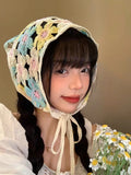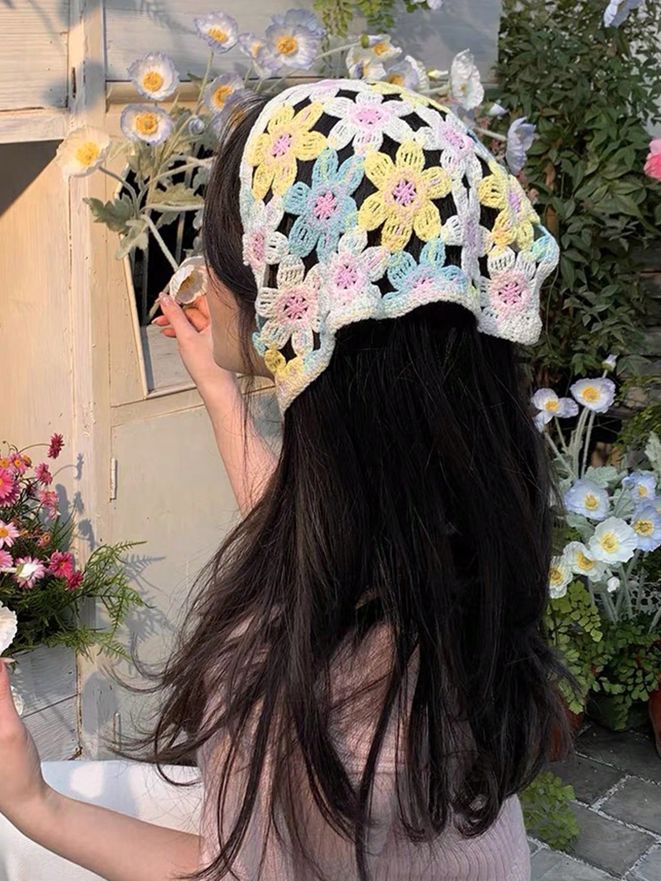 Bohemian Blossom: Knitted Hollow Flower Hairband with Tie-Dye Print