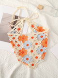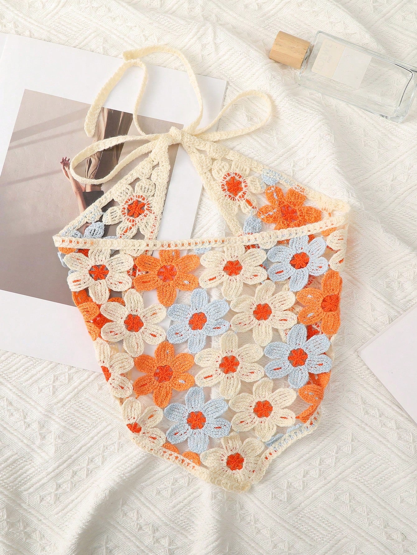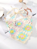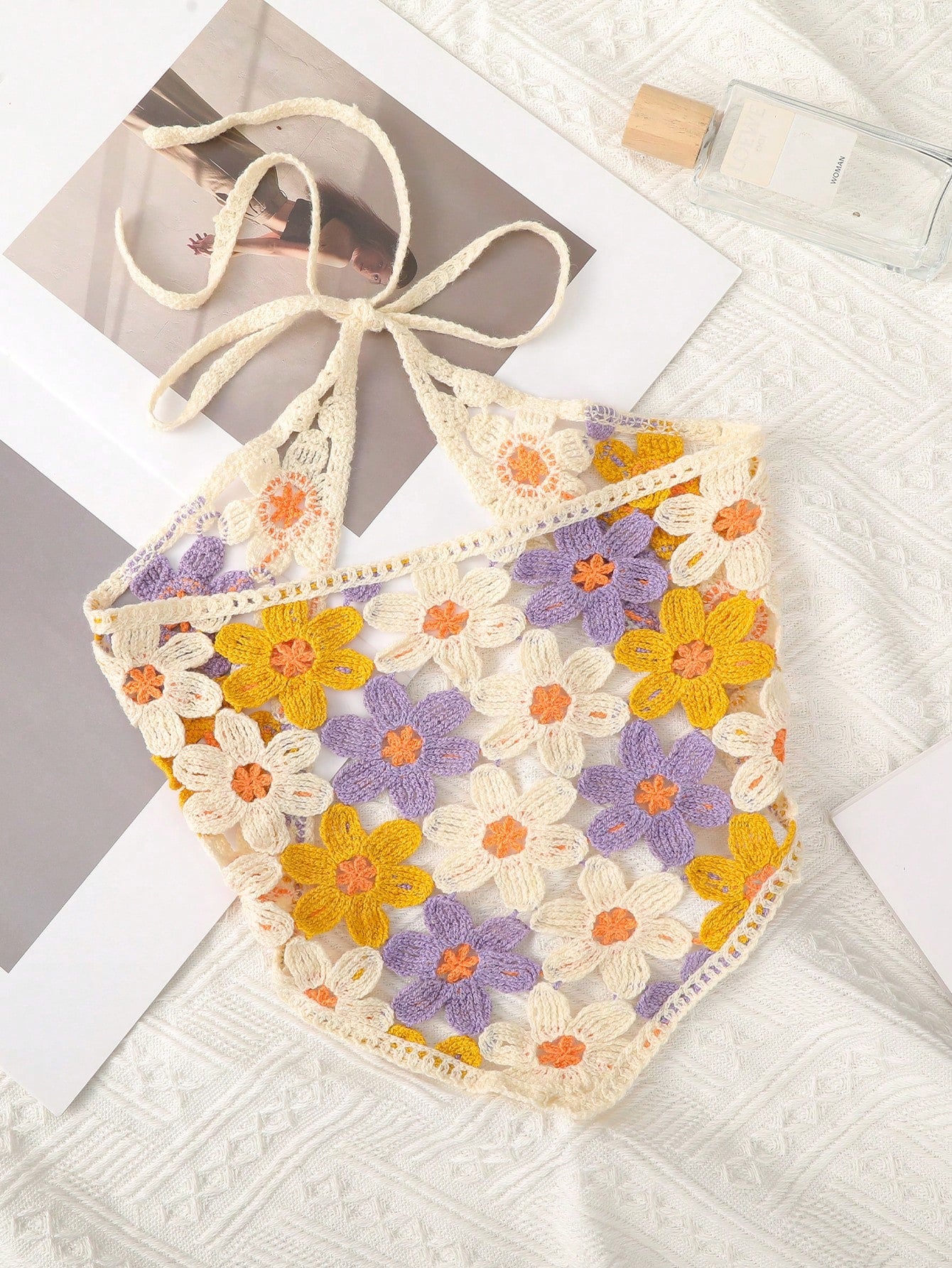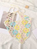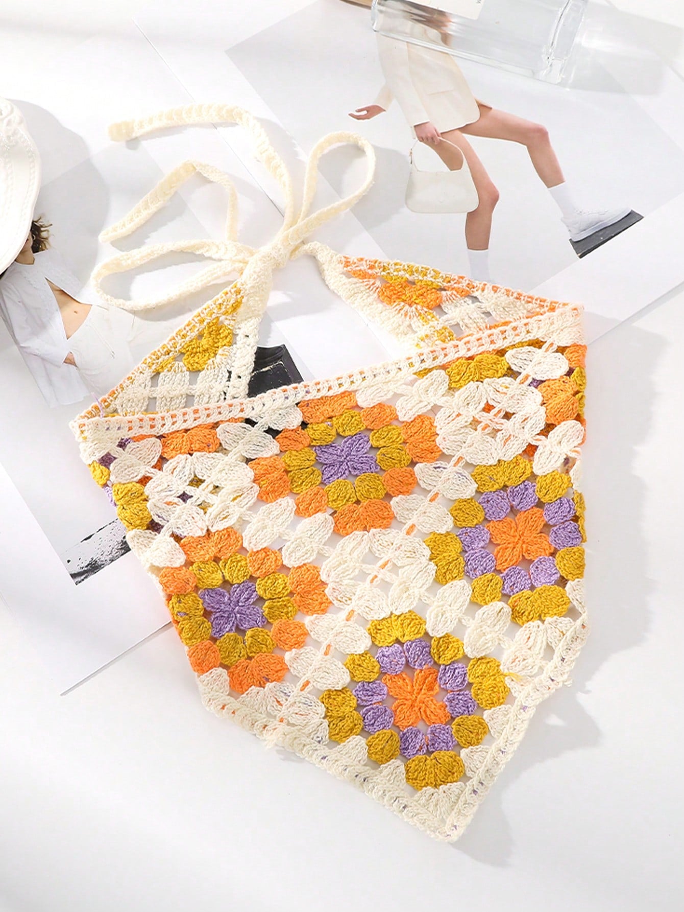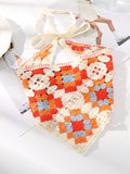 Bohemian Blossom: Knitted Hollow Flower Hairband with Tie-Dye Print