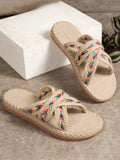 Bohemian Chic: Women’s Summer Weave Strap Peep Toe Flat Sandals