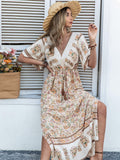 Boho Beauty: Floral Print Sleeve Dress with Split Thigh and Tassel Drawstring Waist