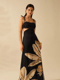 Boho Chic Banana Tree Print Sleeveless Black Summer Dress – Perfect for Holiday Casual Style