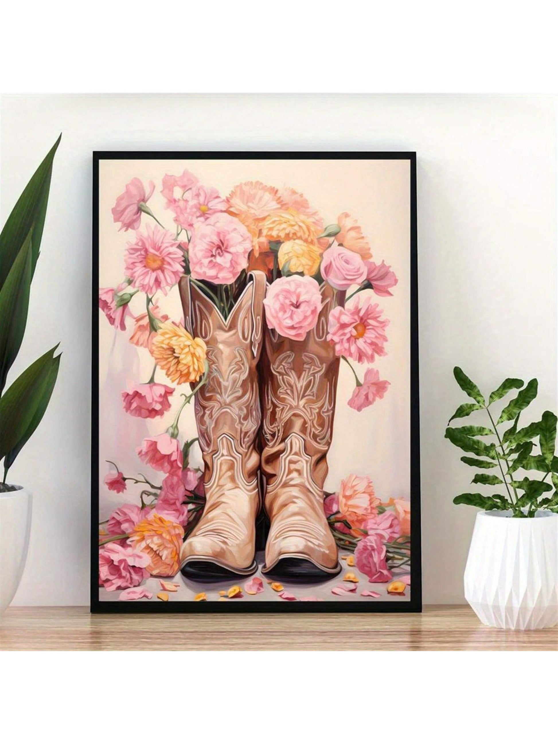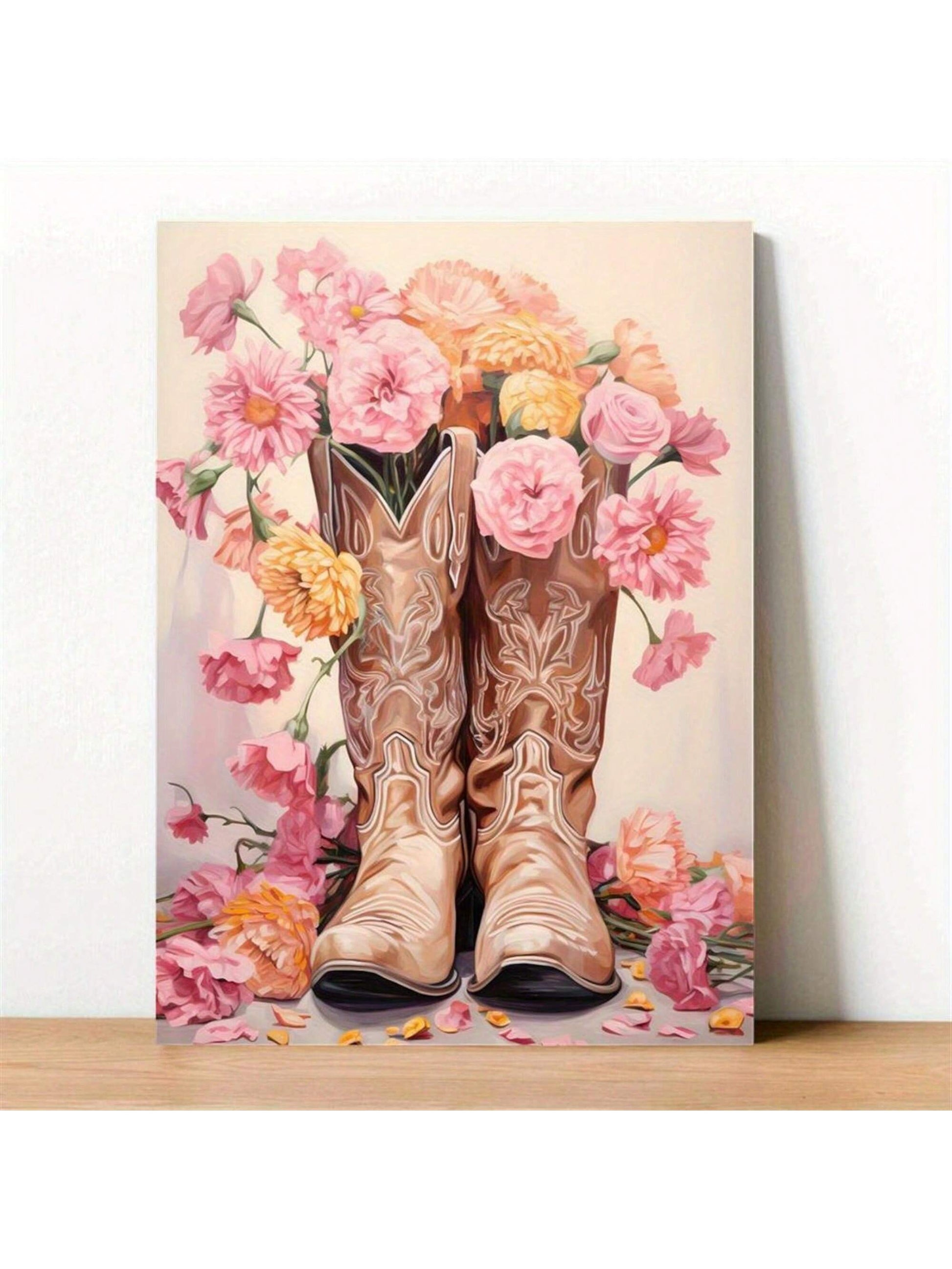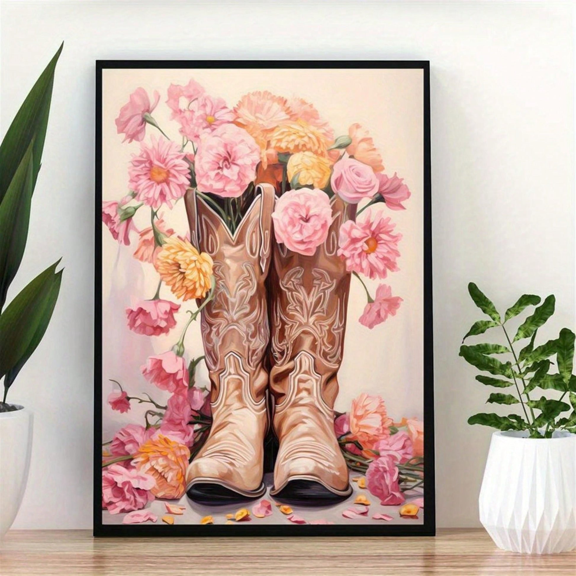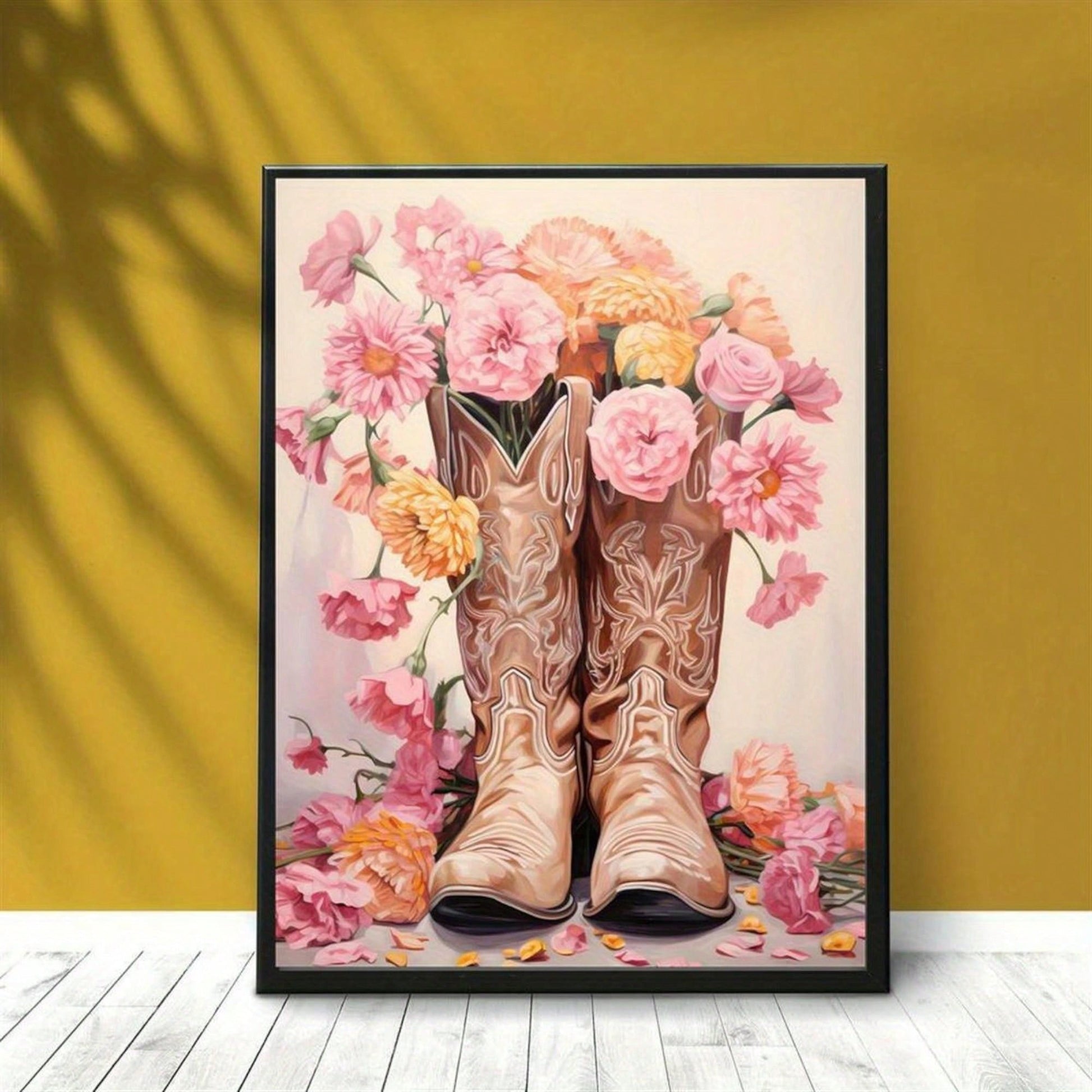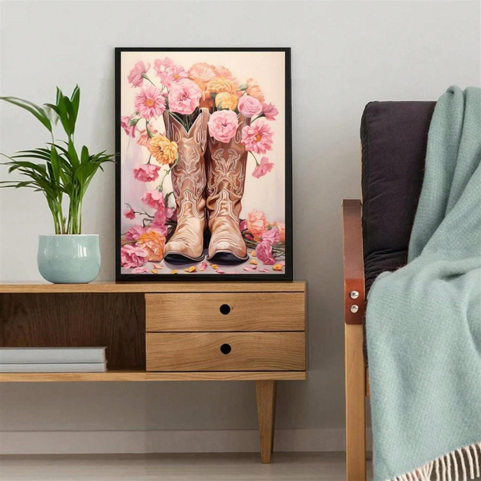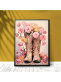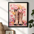 Boho Chic Floral Cowgirl Canvas Art Print: Modern Western Poster for Home Decor