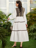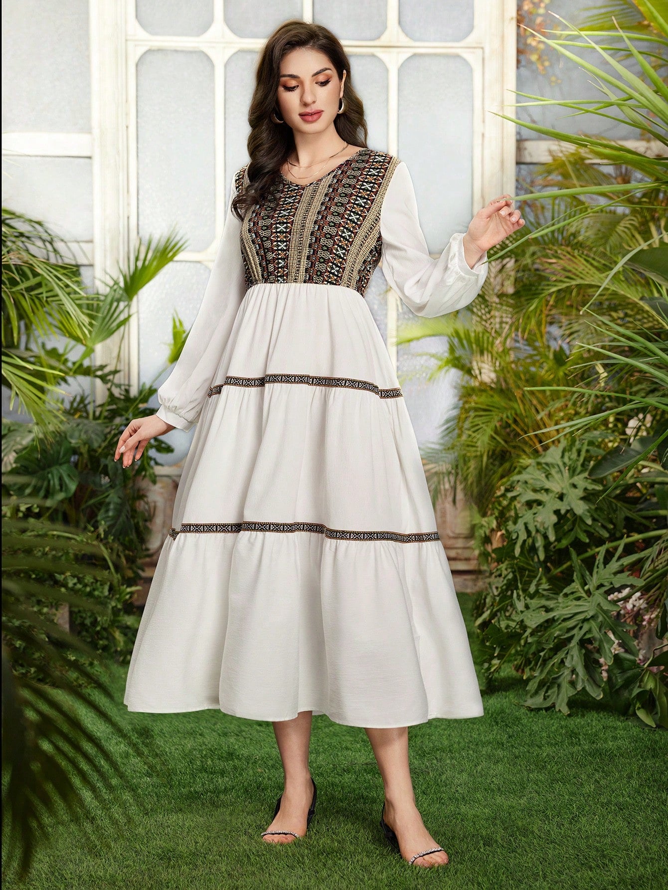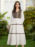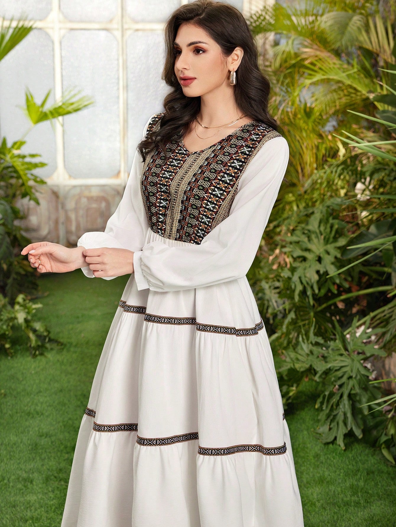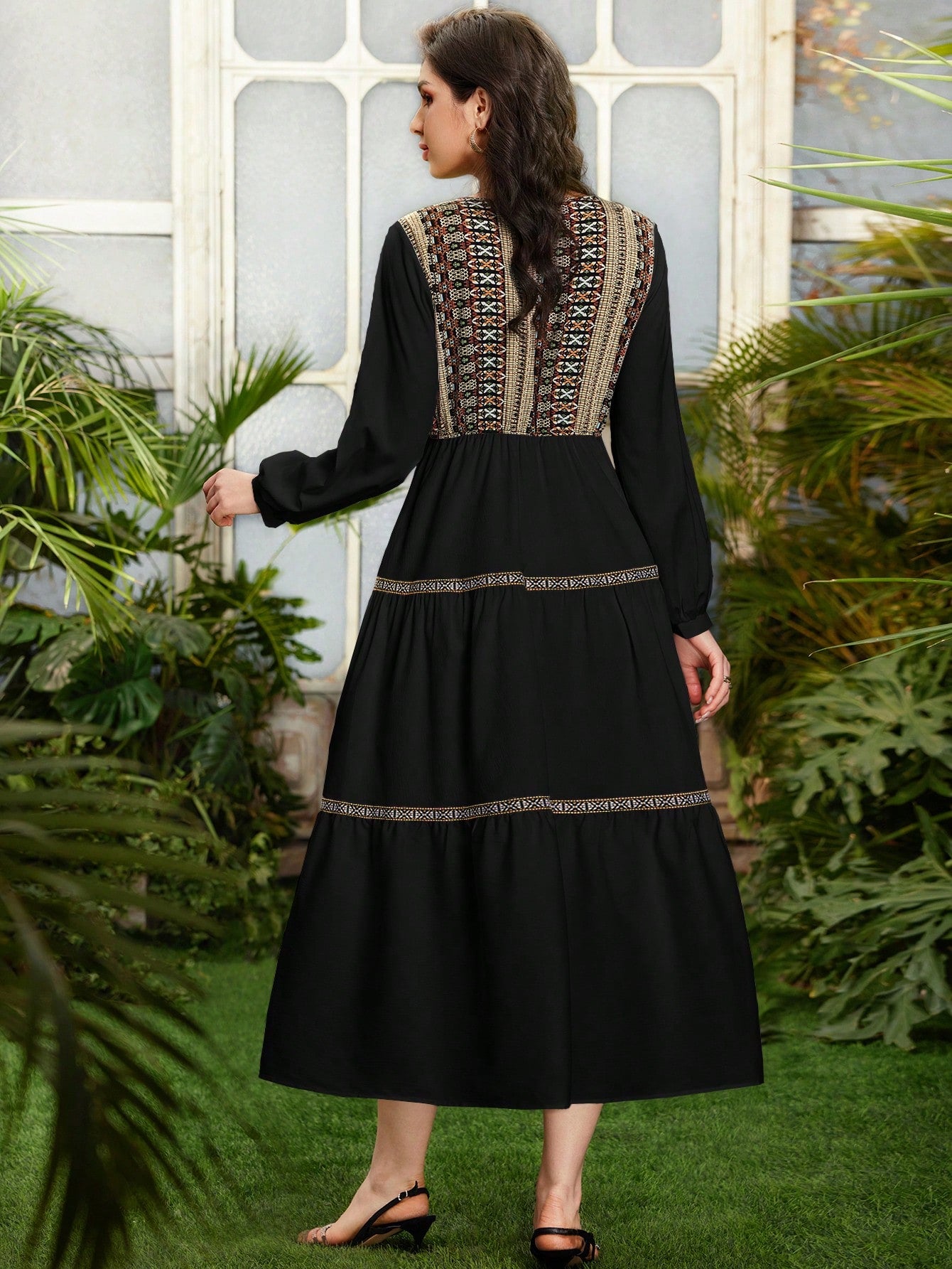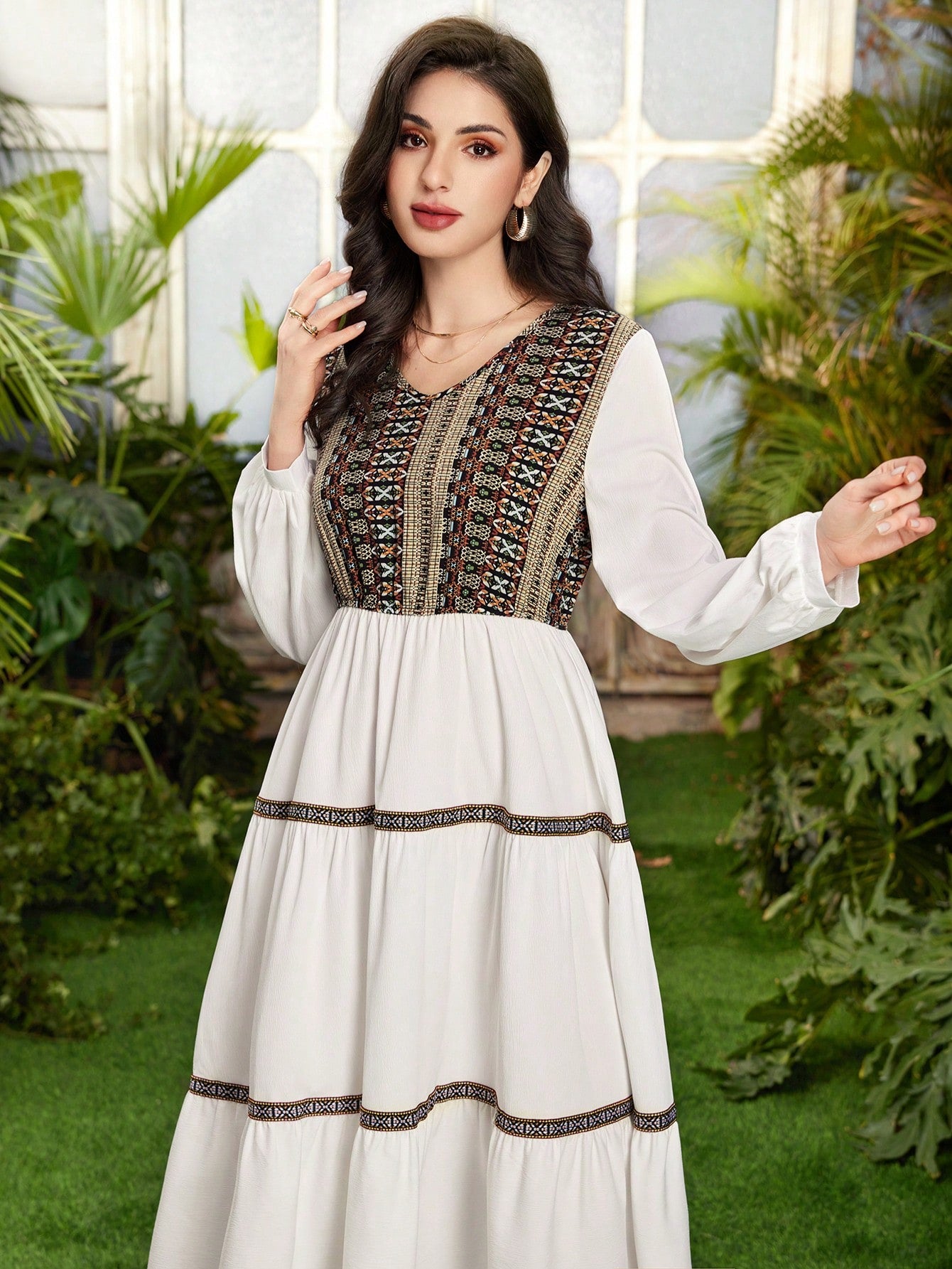 Boho Chic: Patchwork Weave Belt V-Neck Waist Tie Dress