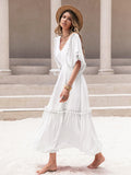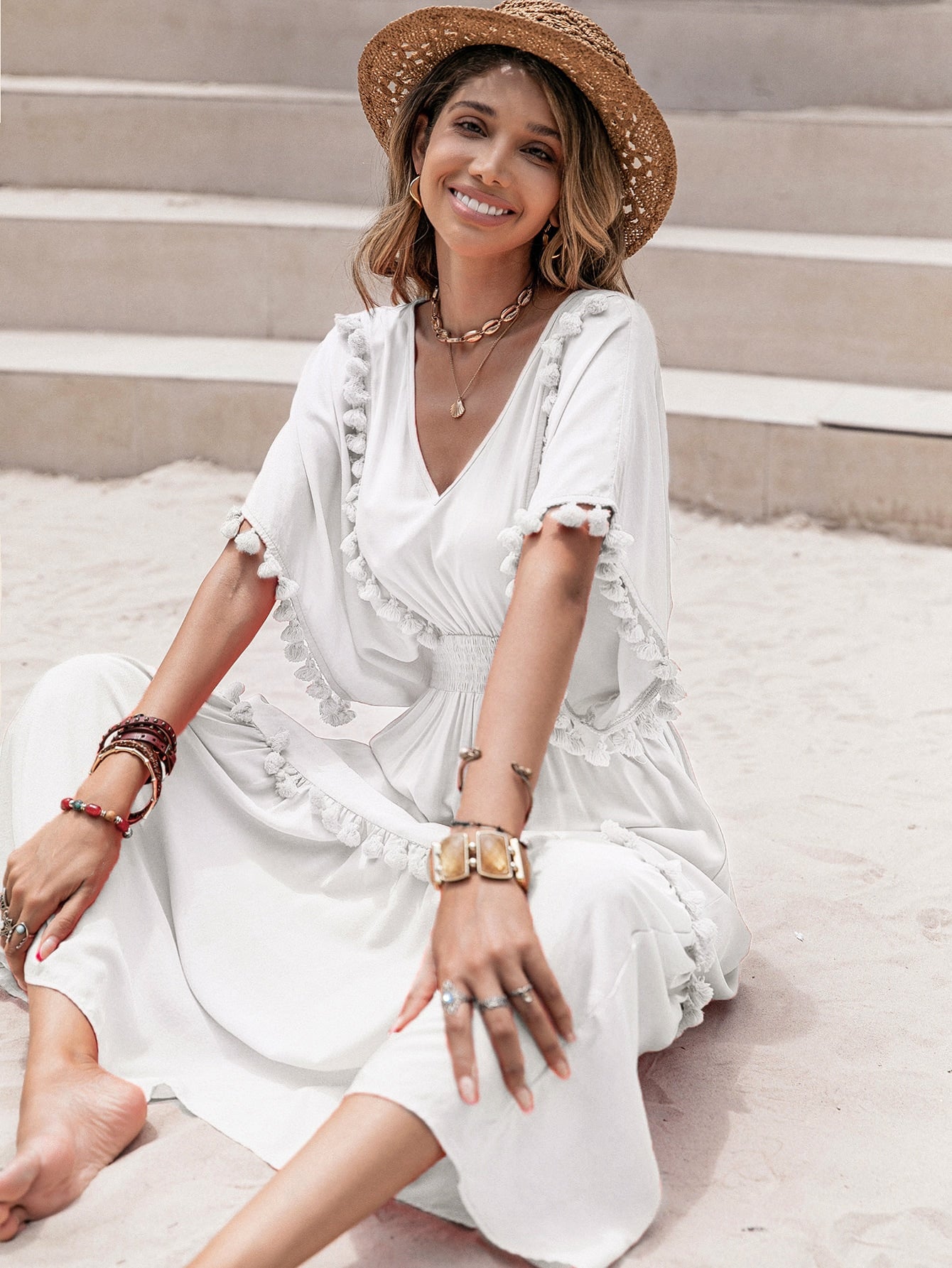 Boho Chic Women's Tassel Trim Dress with Ruffle Hem