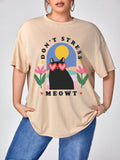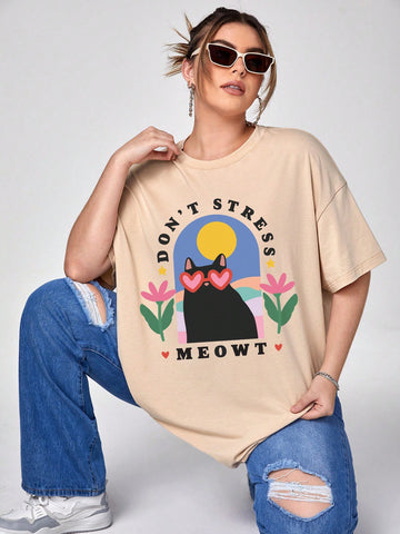 Bold and Beautiful: Cartoon Slogan Graphic Tee for Plus Size Ladies