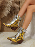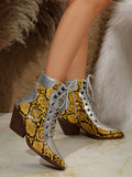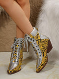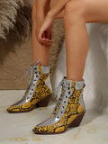 British Style Snake Print Pointed Toe Chelsea Ankle Boots