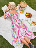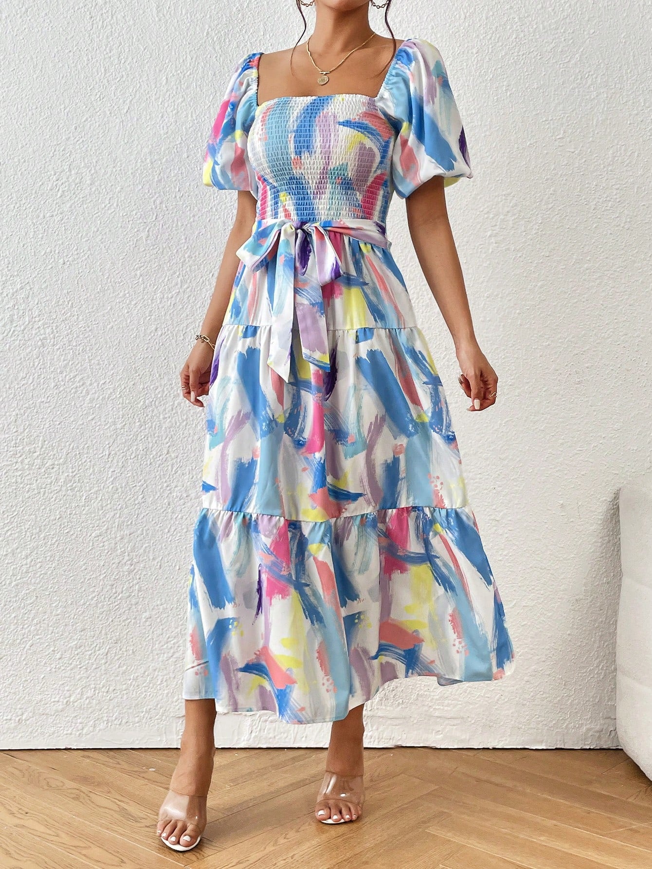 Brush Print Ruffle Hem Belted Dress - A Perfect Summer Wardrobe Essential