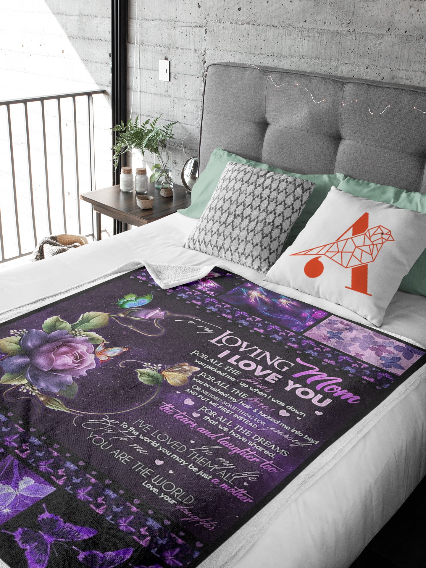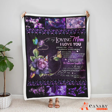 This cozy blanket features a galaxy-style design with a vibrant purple hue and a beautiful arrangement of butterflies and flowers. Perfect for a Mother's Day gift, it provides warmth and comfort in any room.