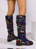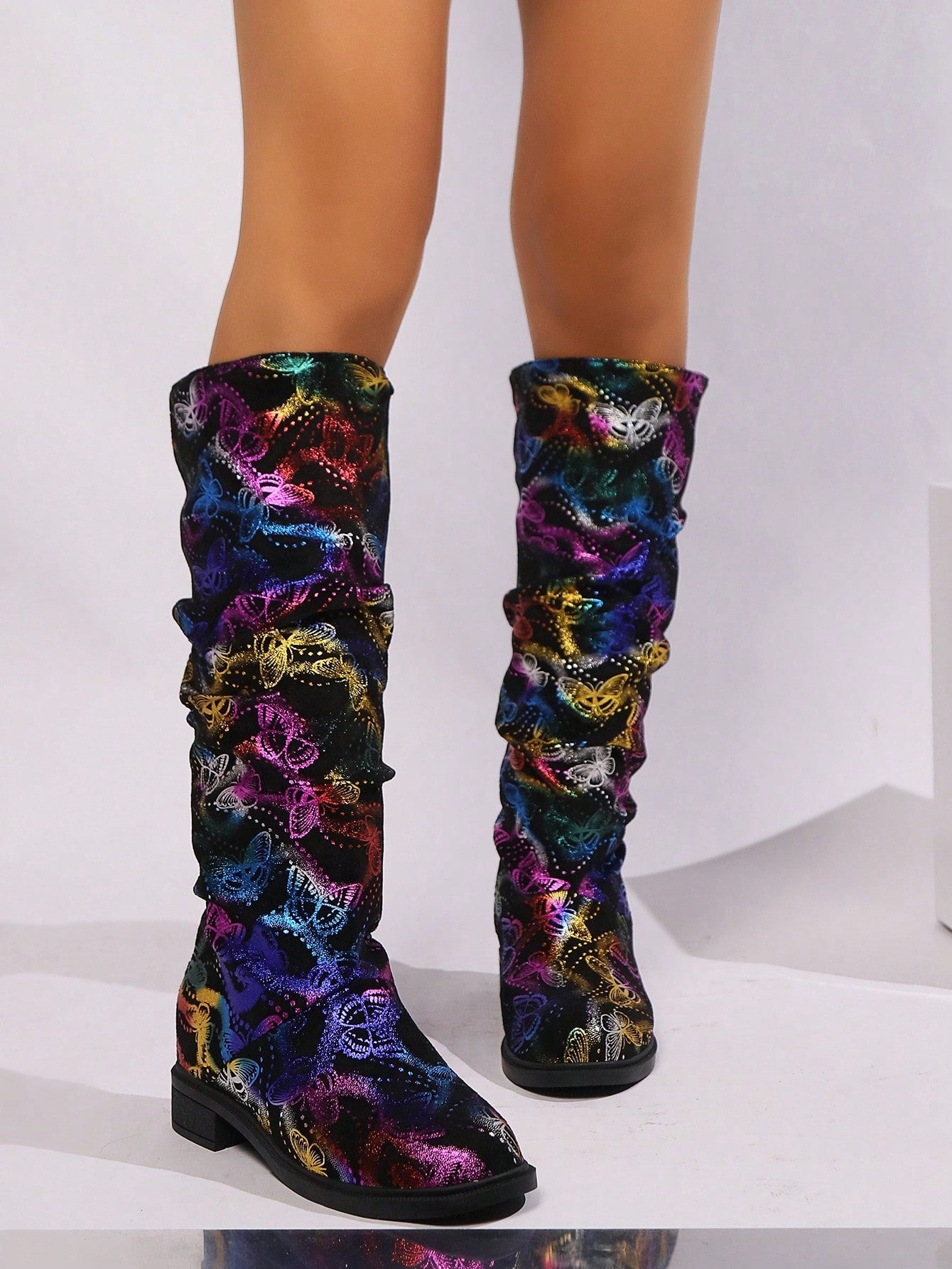 Butterfly Dreams: Fashionable Mid-Calf Boots with Plush Sheepskin Texture