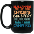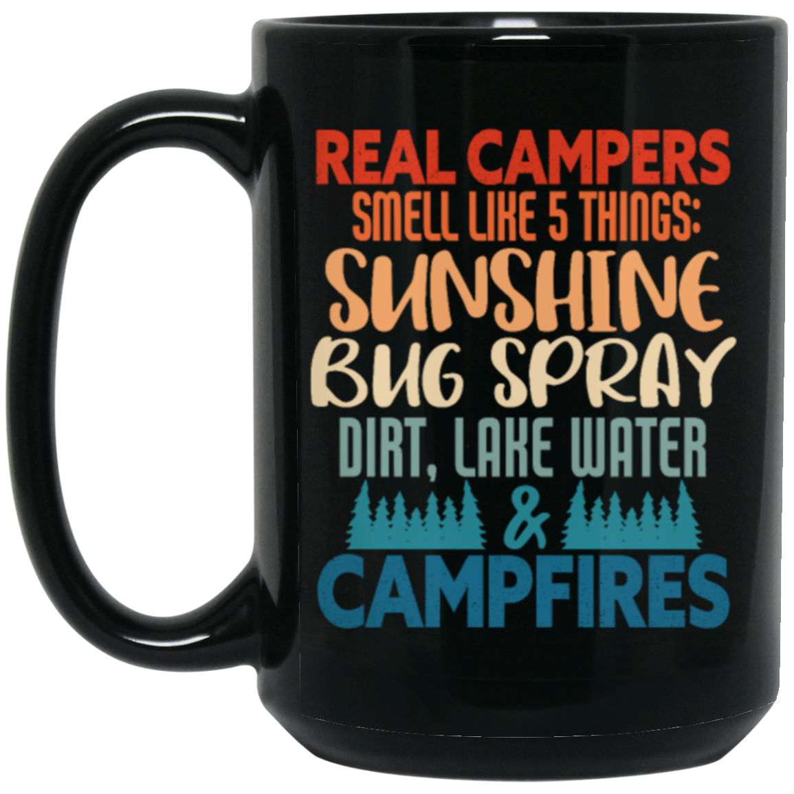 Campers Gift, Real Campers, Smell Like 5 Things, Retro Camping Quote Black Mug