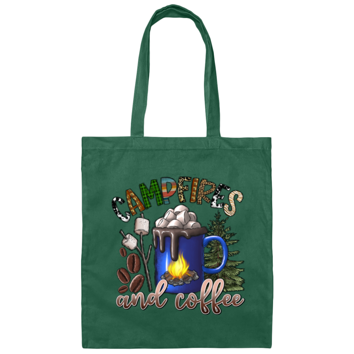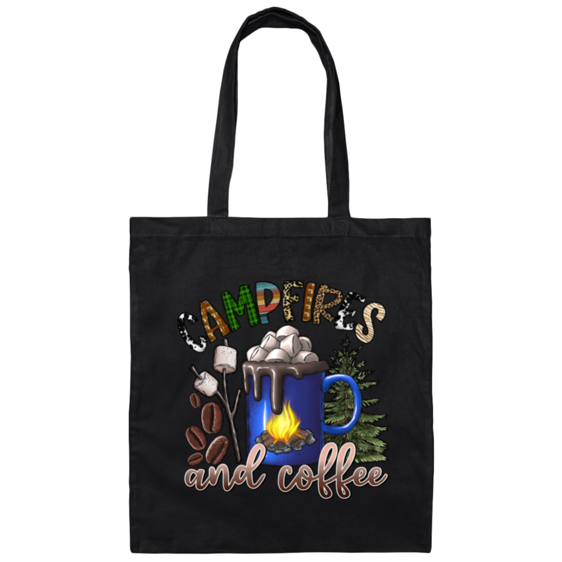 Campfire Camping Camper With Coffee Canvas Tote Bag