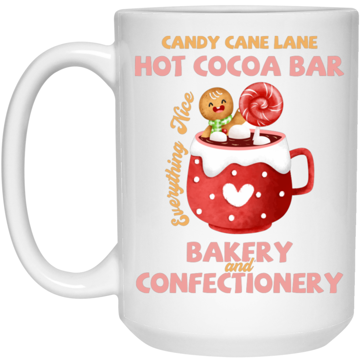 Candy Cane Lane Hot Cocoa Bar, Bakery And Confectionery, Merry Christmas, Trendy Christmas White Mug