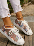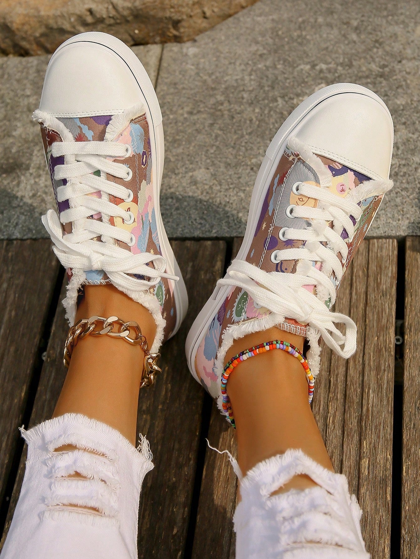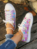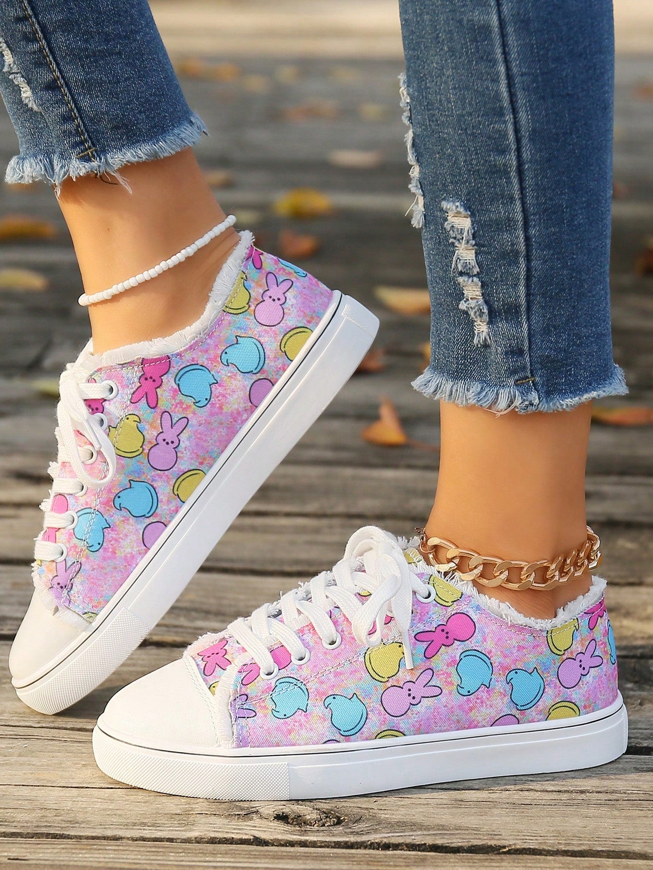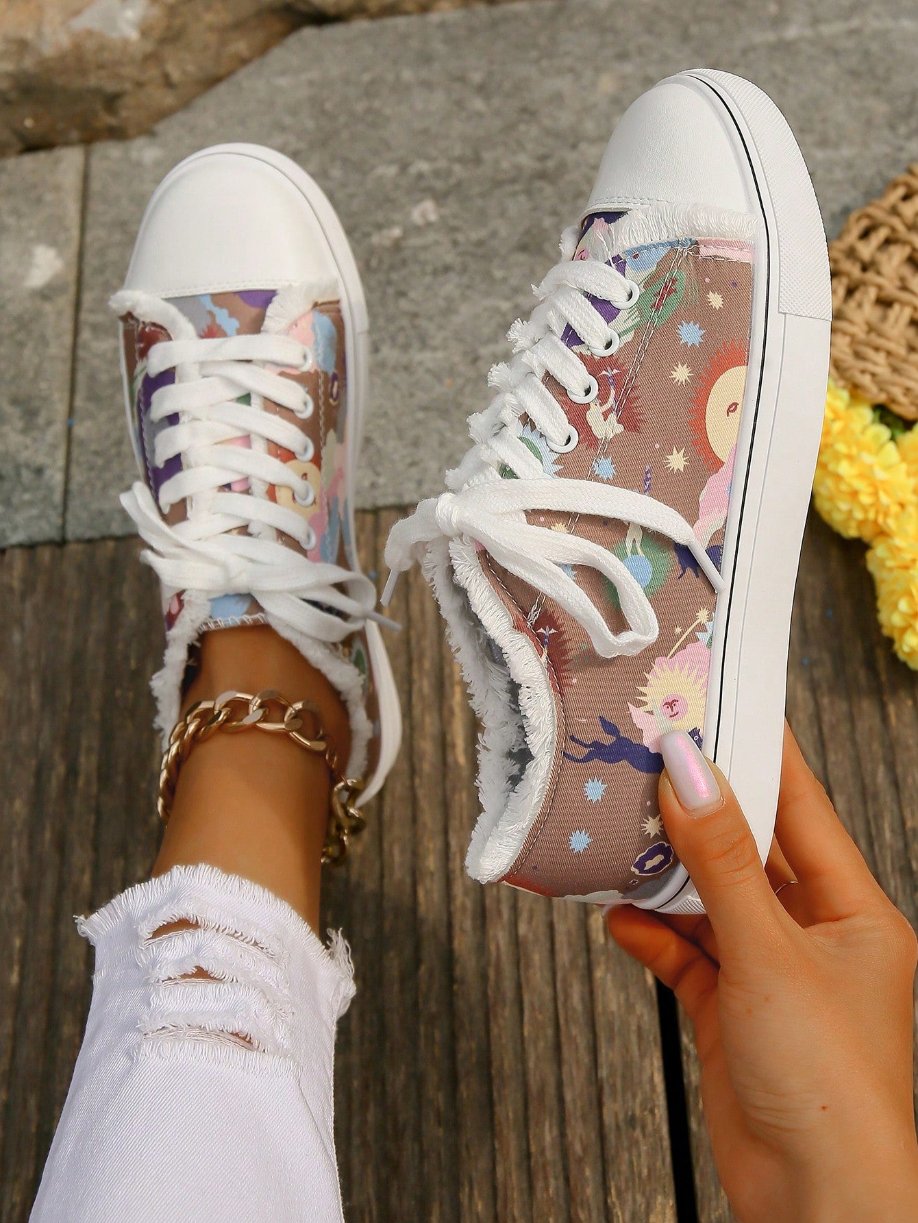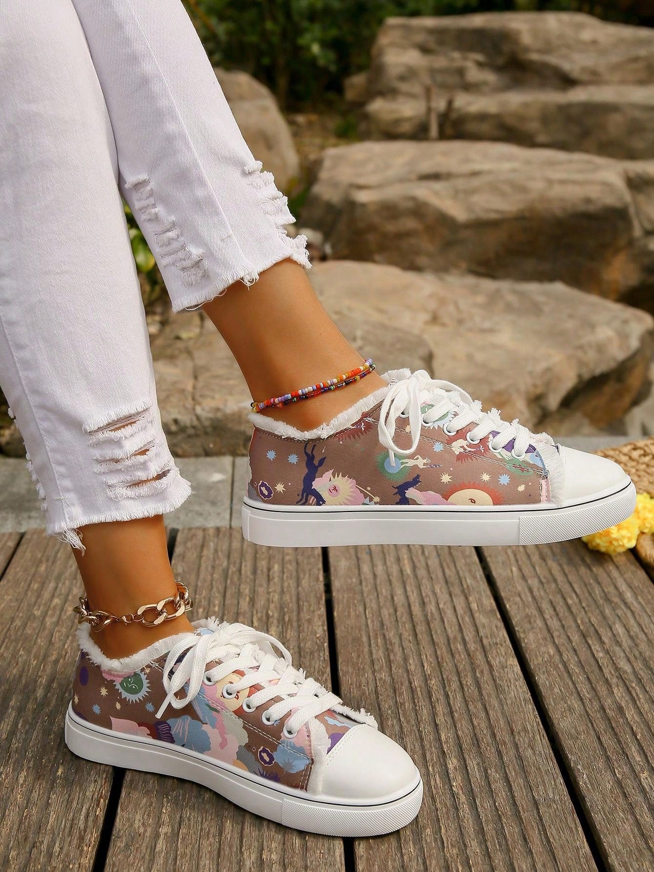 Sneakers for European and American Women. Made specifically for women, these sneakers feature unique cartoon prints that will add a touch of fun to any outfit. With a wide range of sizes and a comfortable fit, these sneakers are a must-have for any fashion-forward woman. "