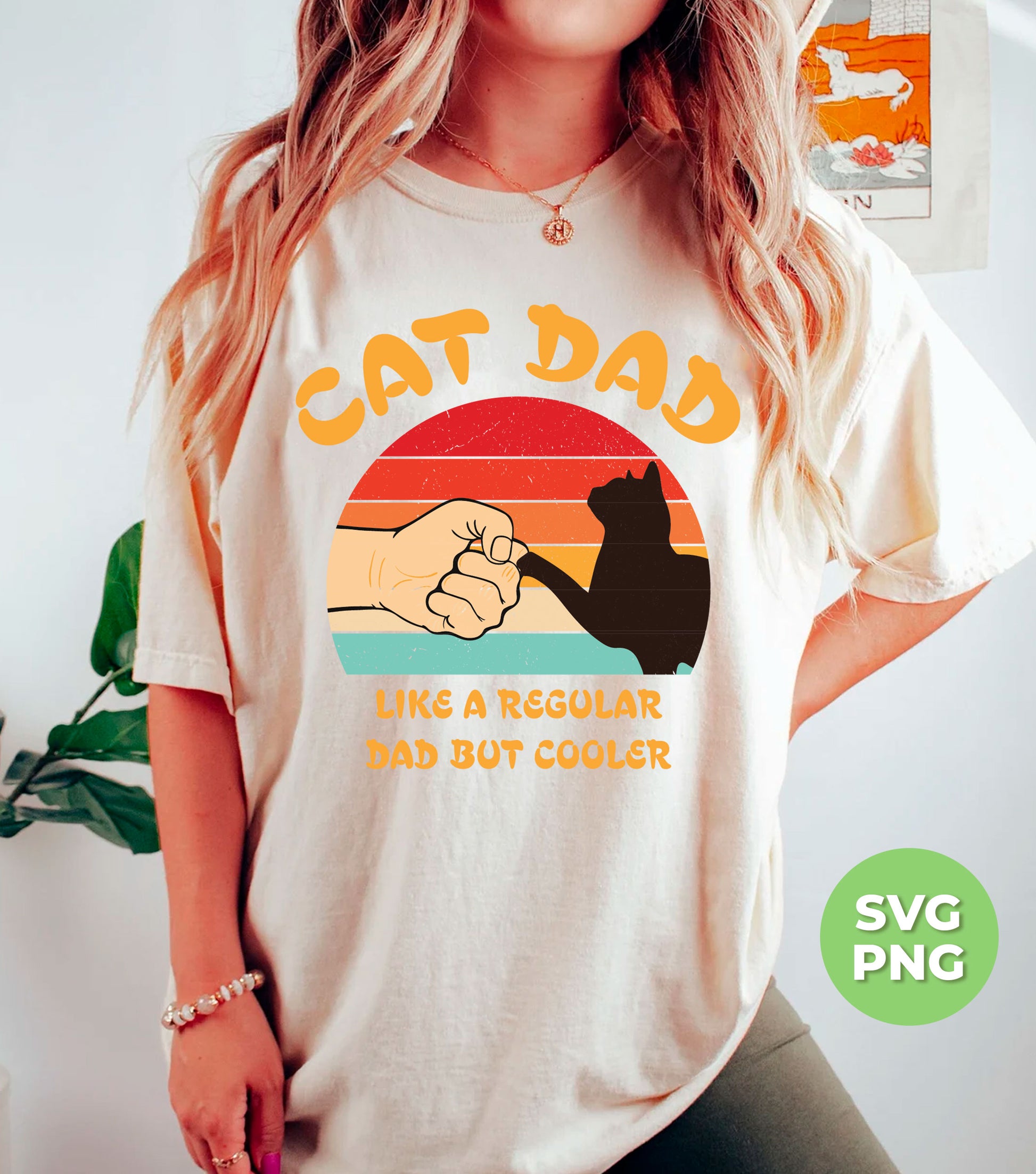 Cat Dad, Like A Regular Dad But Cooler, Cat Lover, Retro Cat, Png Sublimation