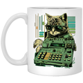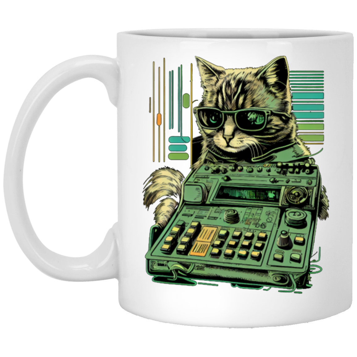 Cat Lover, Cool Cat, Cat Synthesizer, Analogue Synth Vintage Studio Gear White Mug
