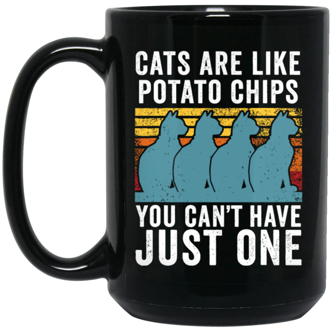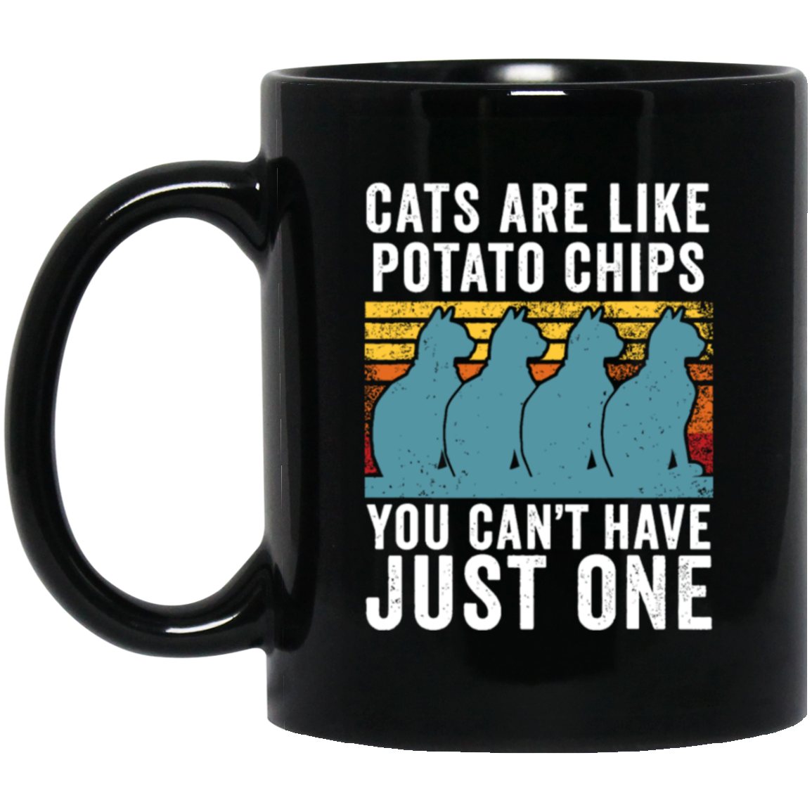 Cats Are Like Potato Chips, You Cannot Have Just One, Retro Cat Lover Black Mug