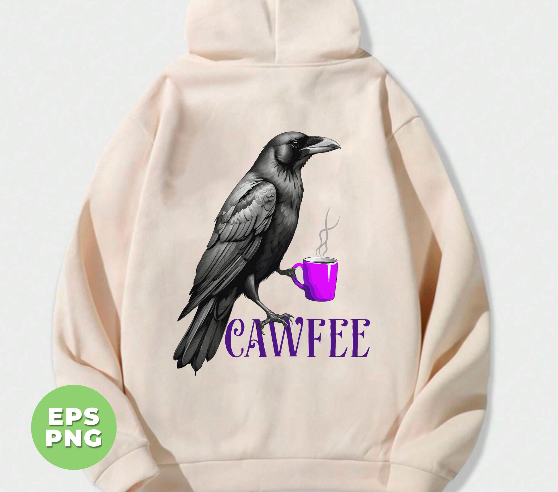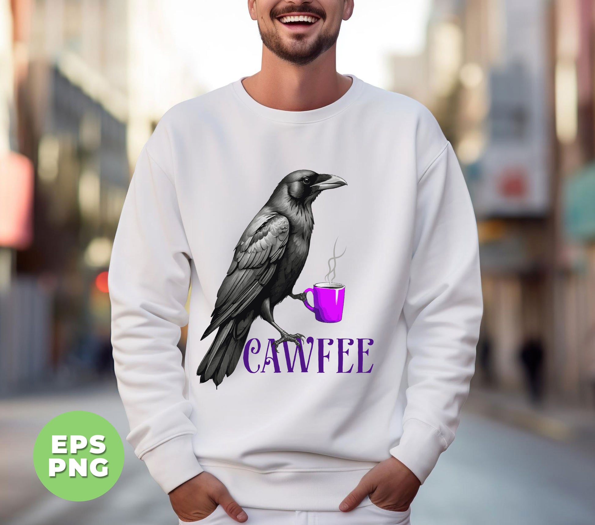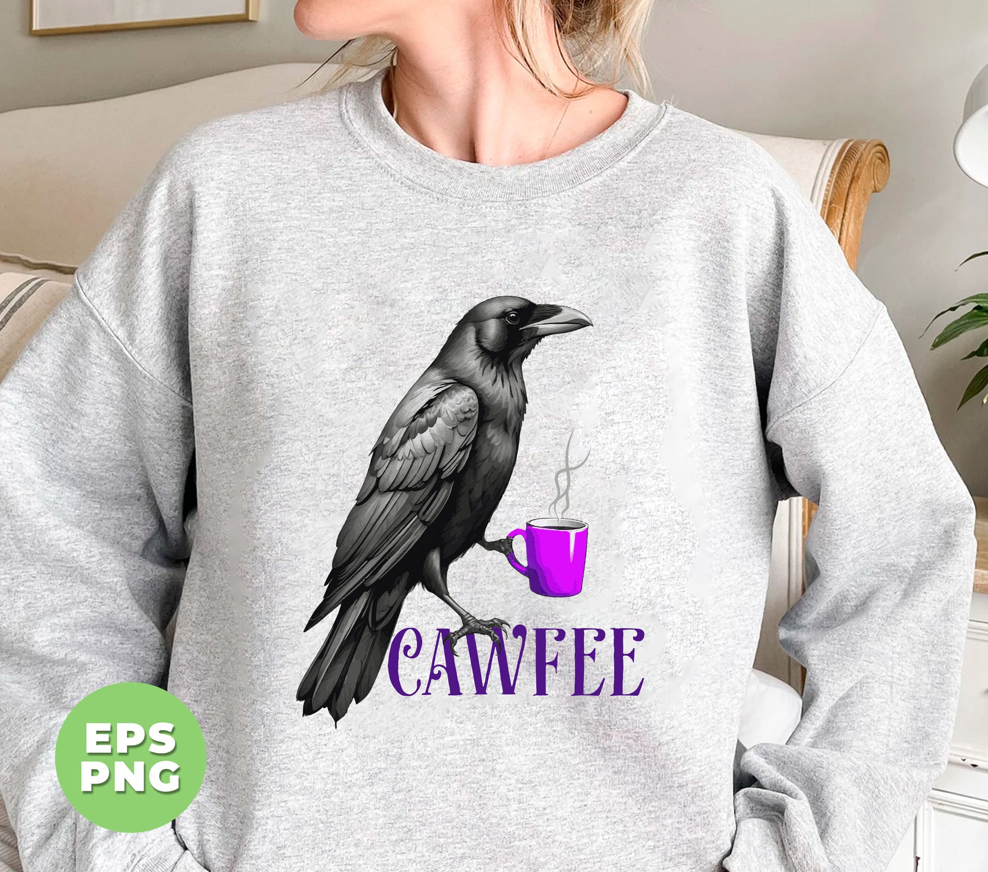 Cawfee Gift, Funny Bird, Grey Bird Drink Coffee, Love Bird, Love Coffee, Raven Bird, Crow Bird, Digital Files, Png Sublimation