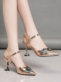 Champagne Glamour: Heart Shape Decor Snakeskin Embossed Ankle Strap Pumps