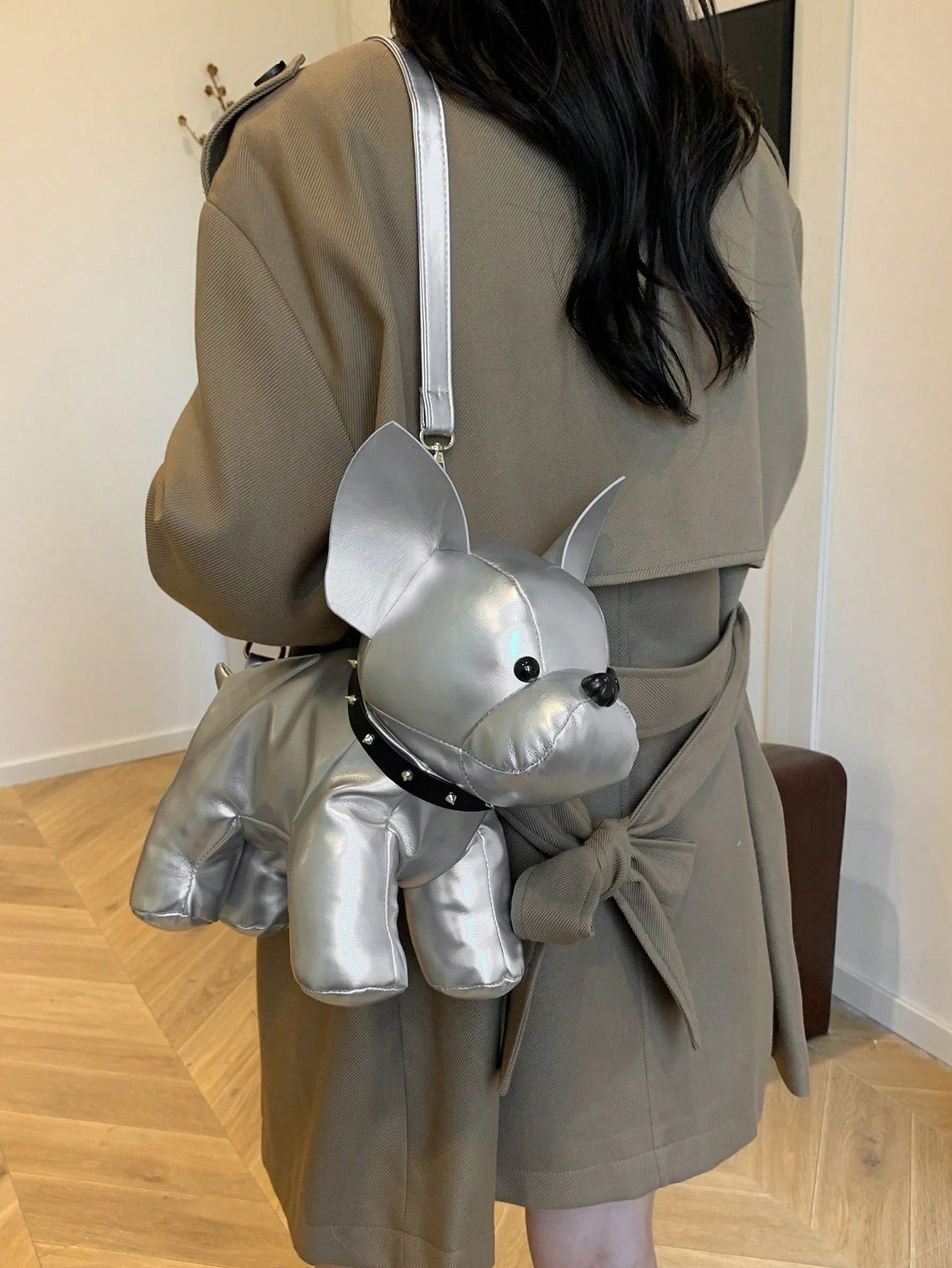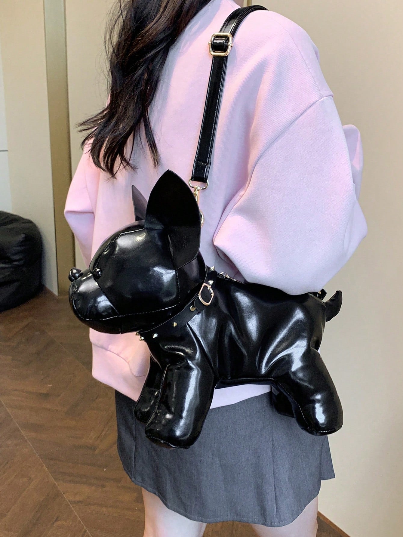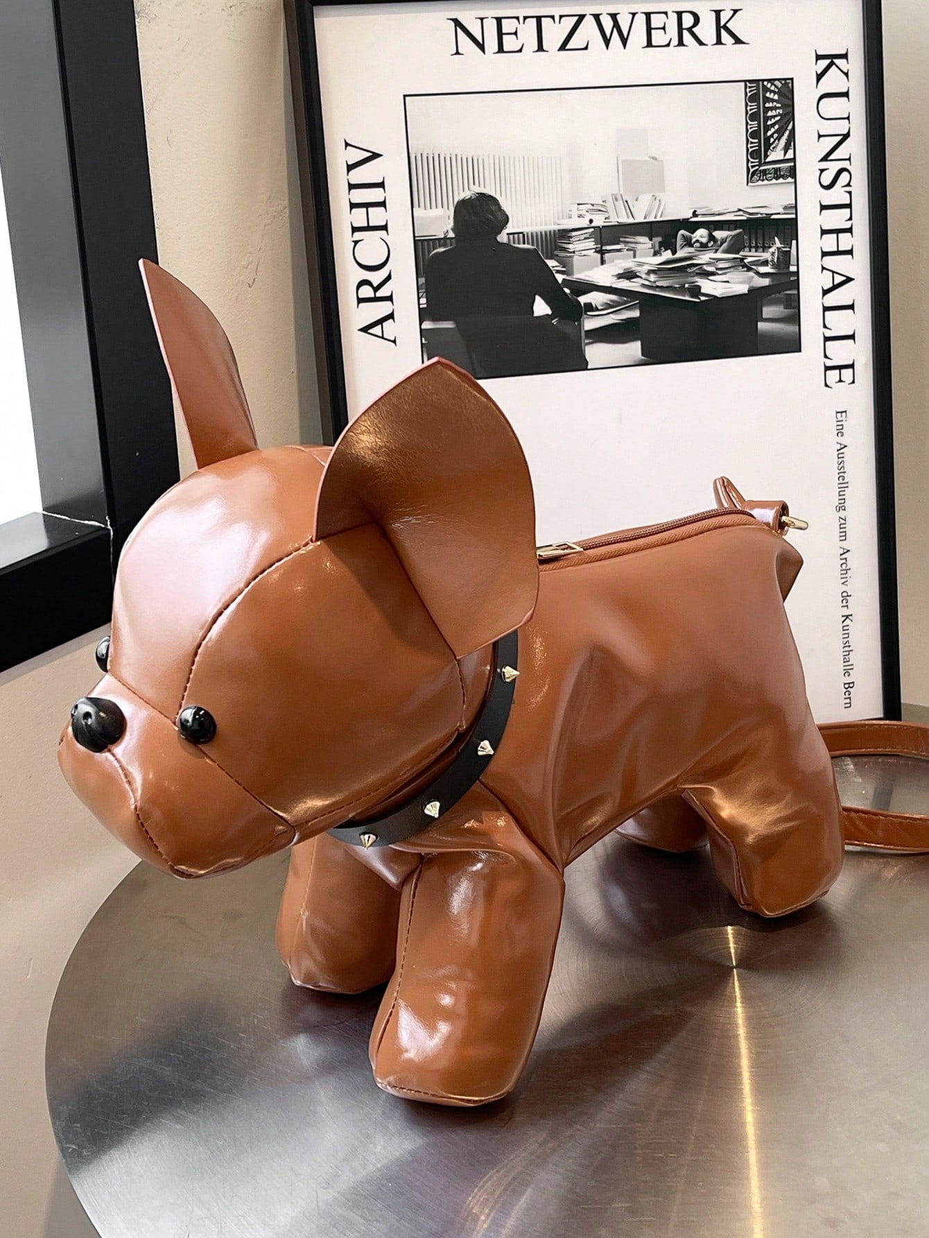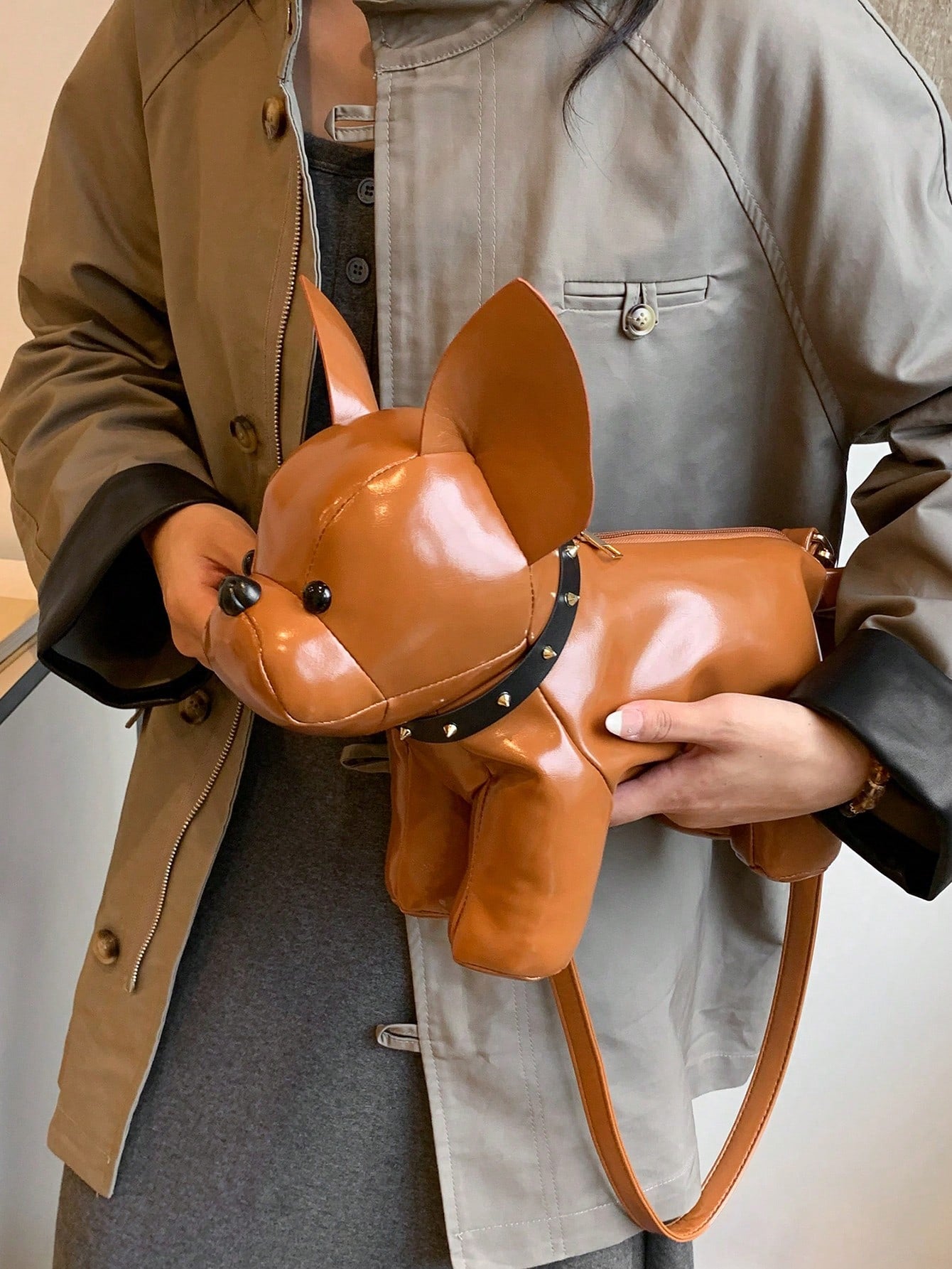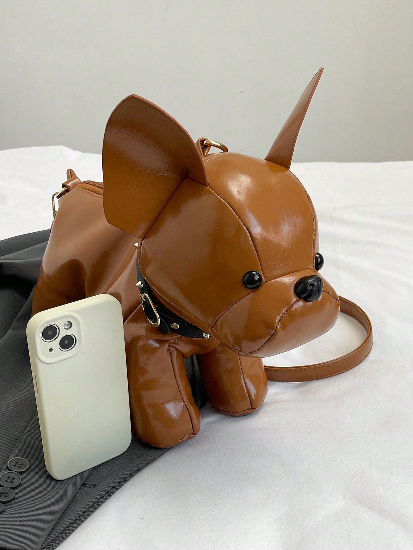 Charming Bulldog Plush Crossbody Bag - Stylish PU Leather Animal Shoulder Bag for Everyday Use