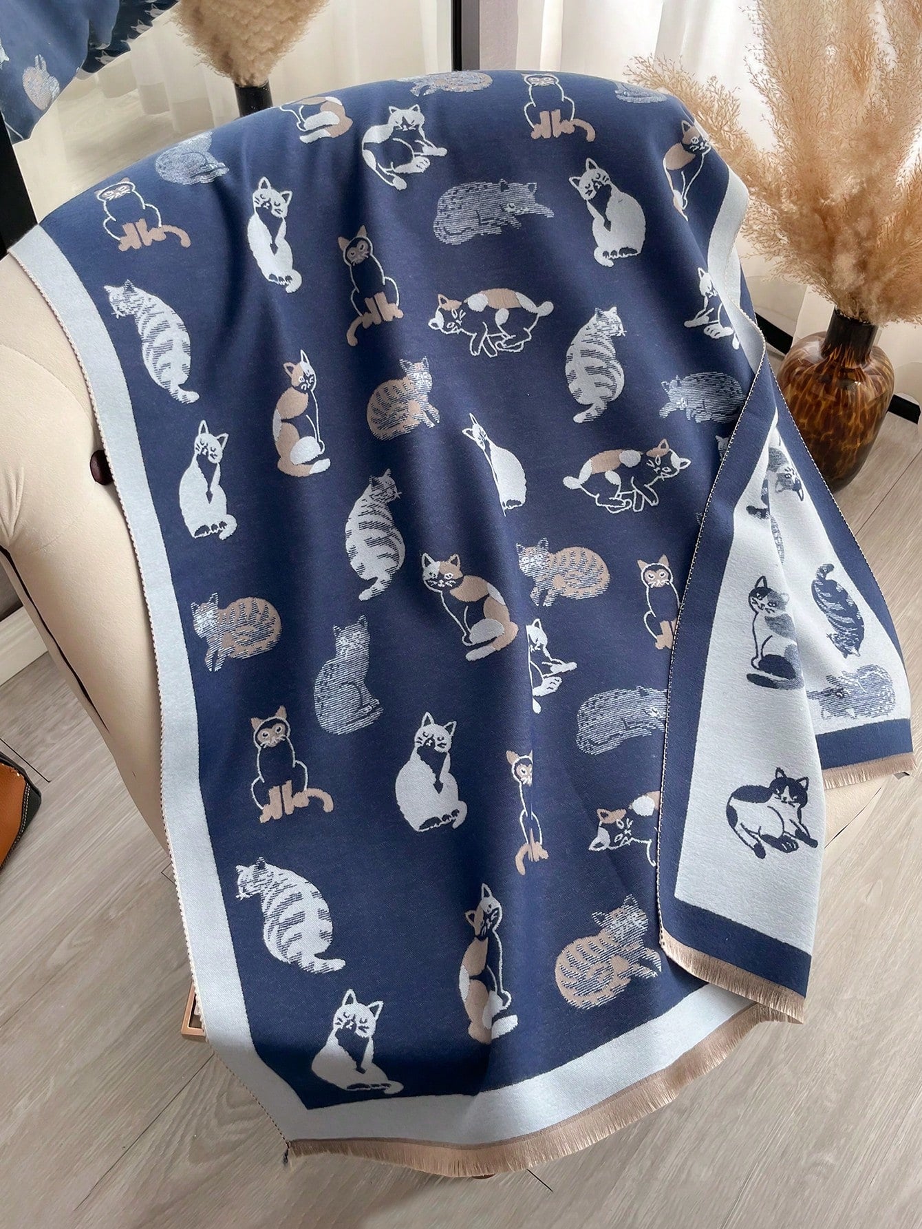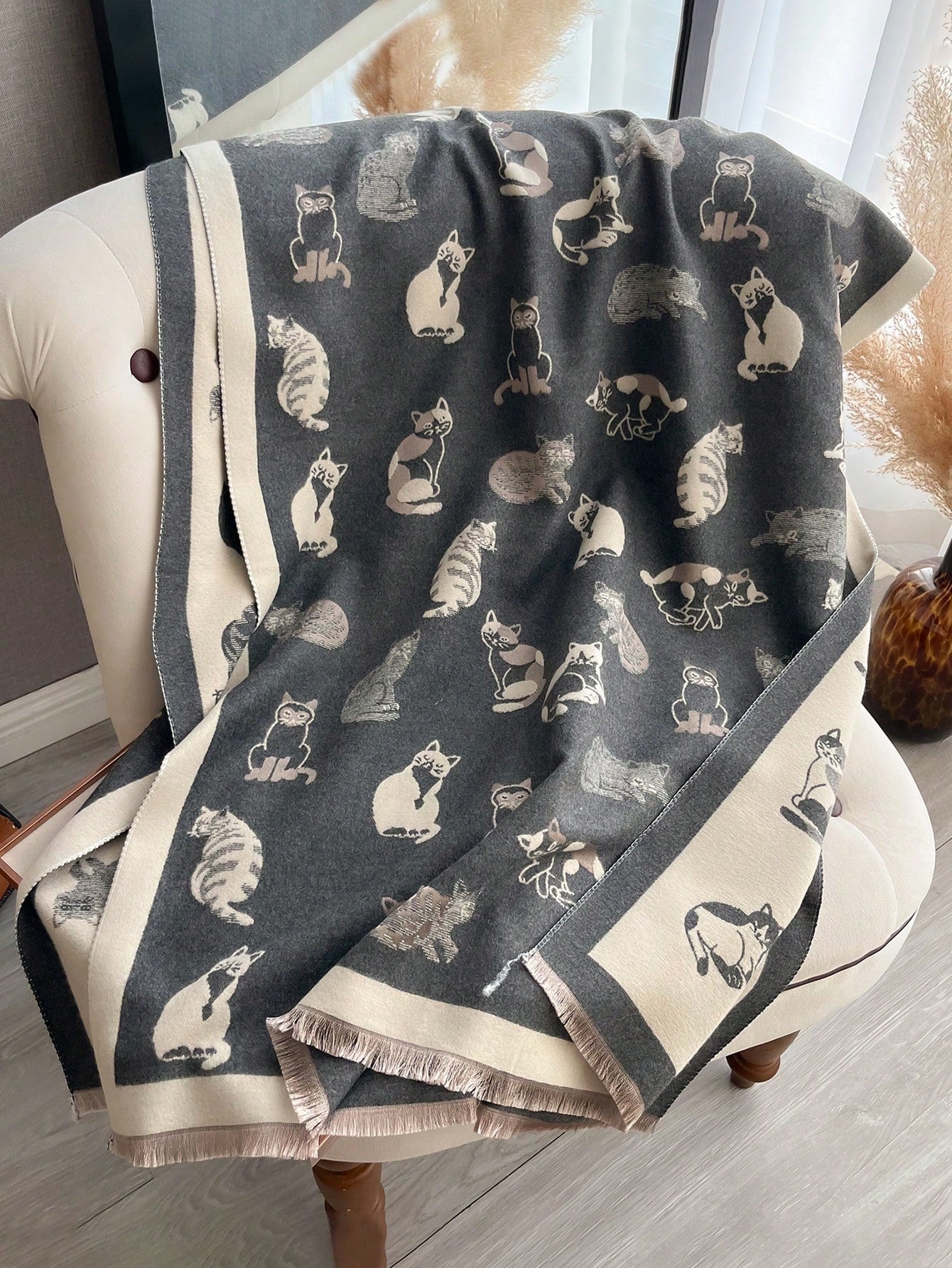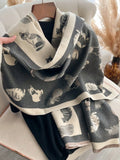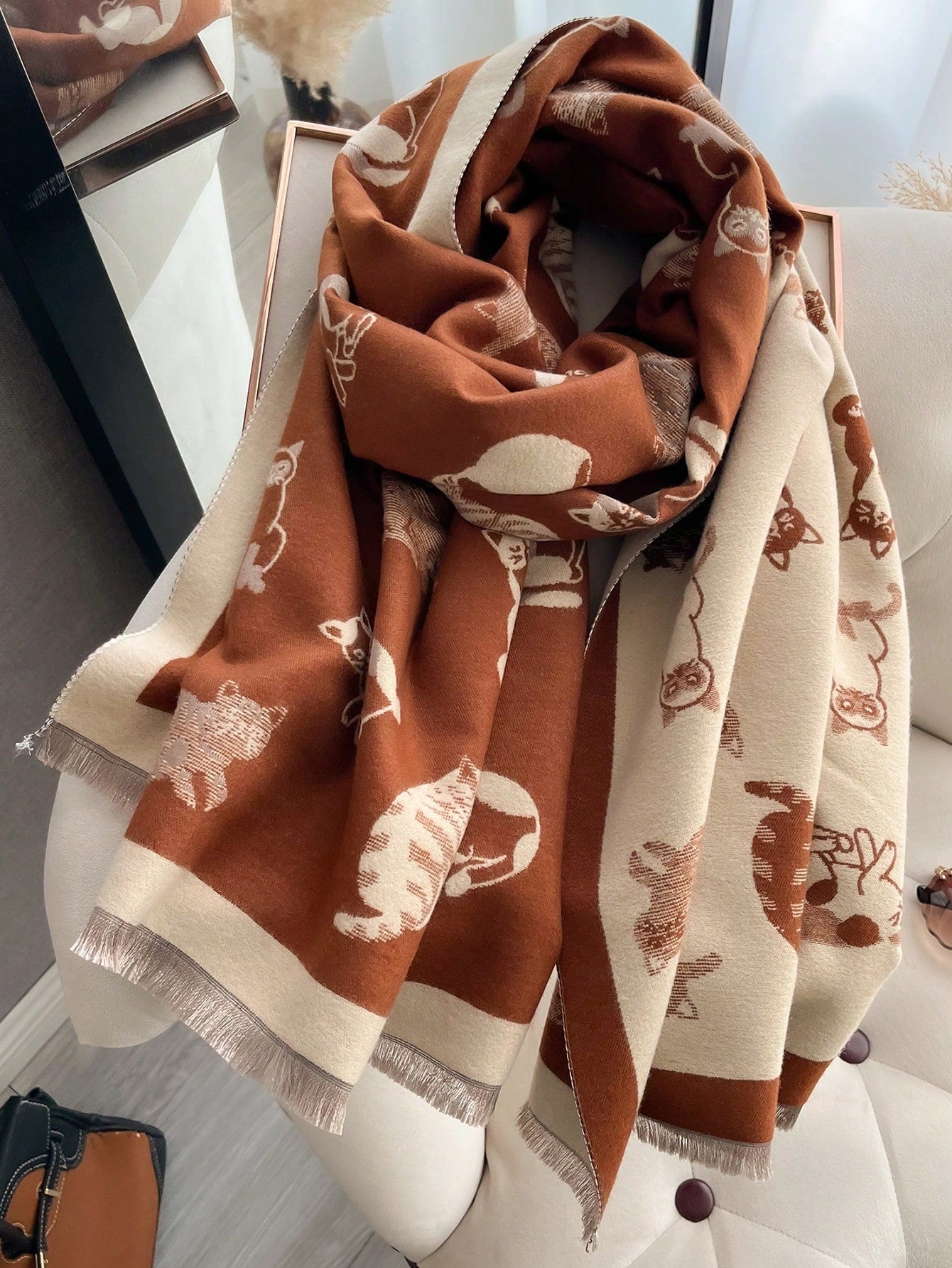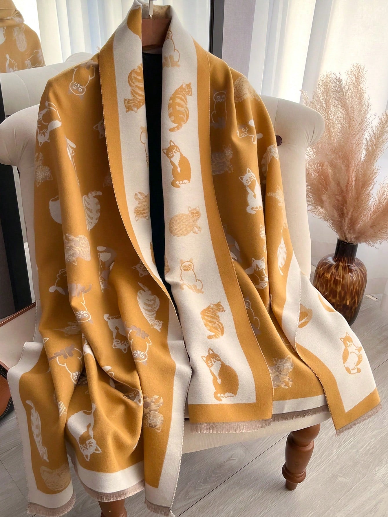 Charming Cat Jacquard Scarf: Cozy Faux Cashmere Accessory for Autumn/Winter
