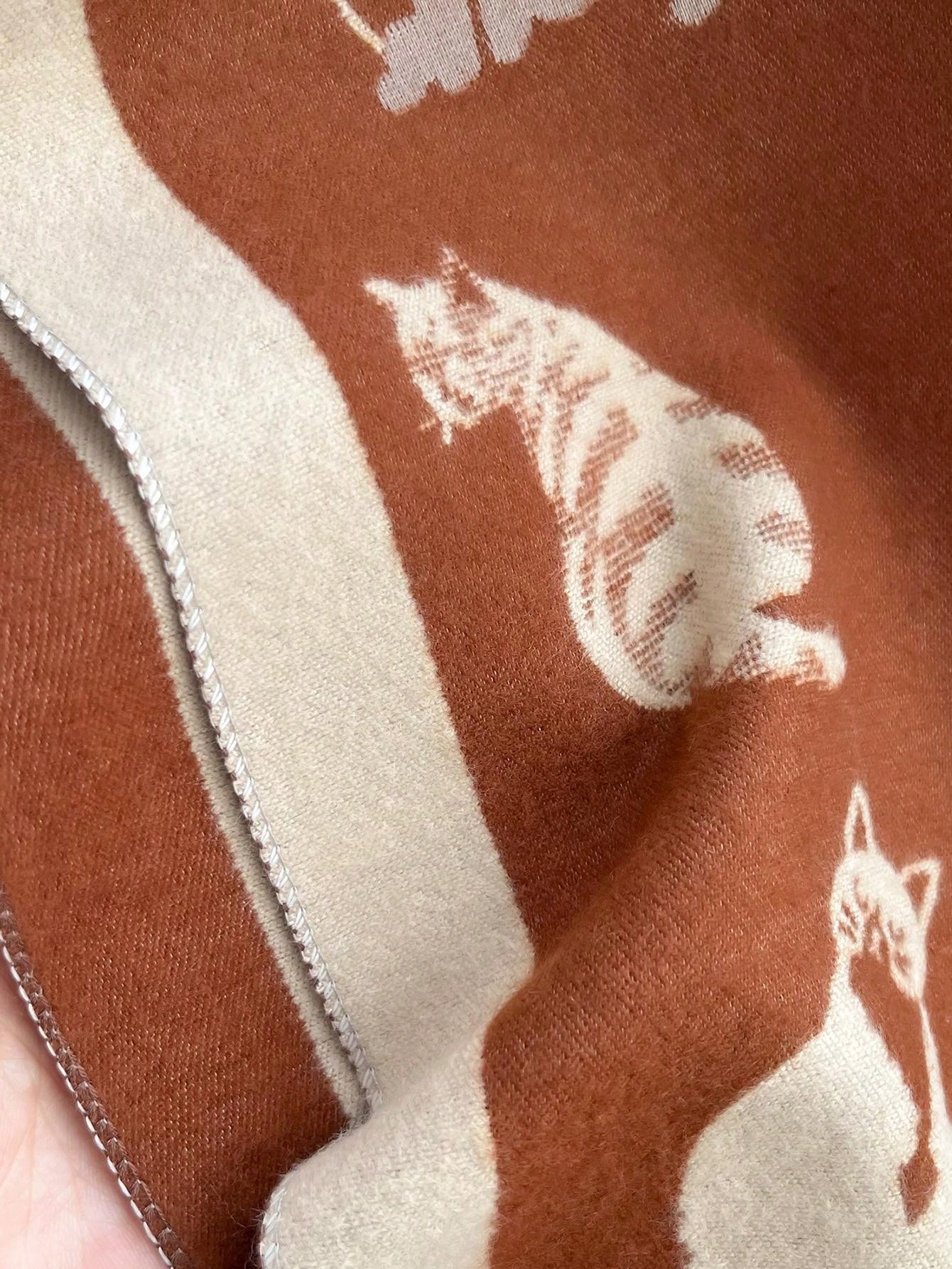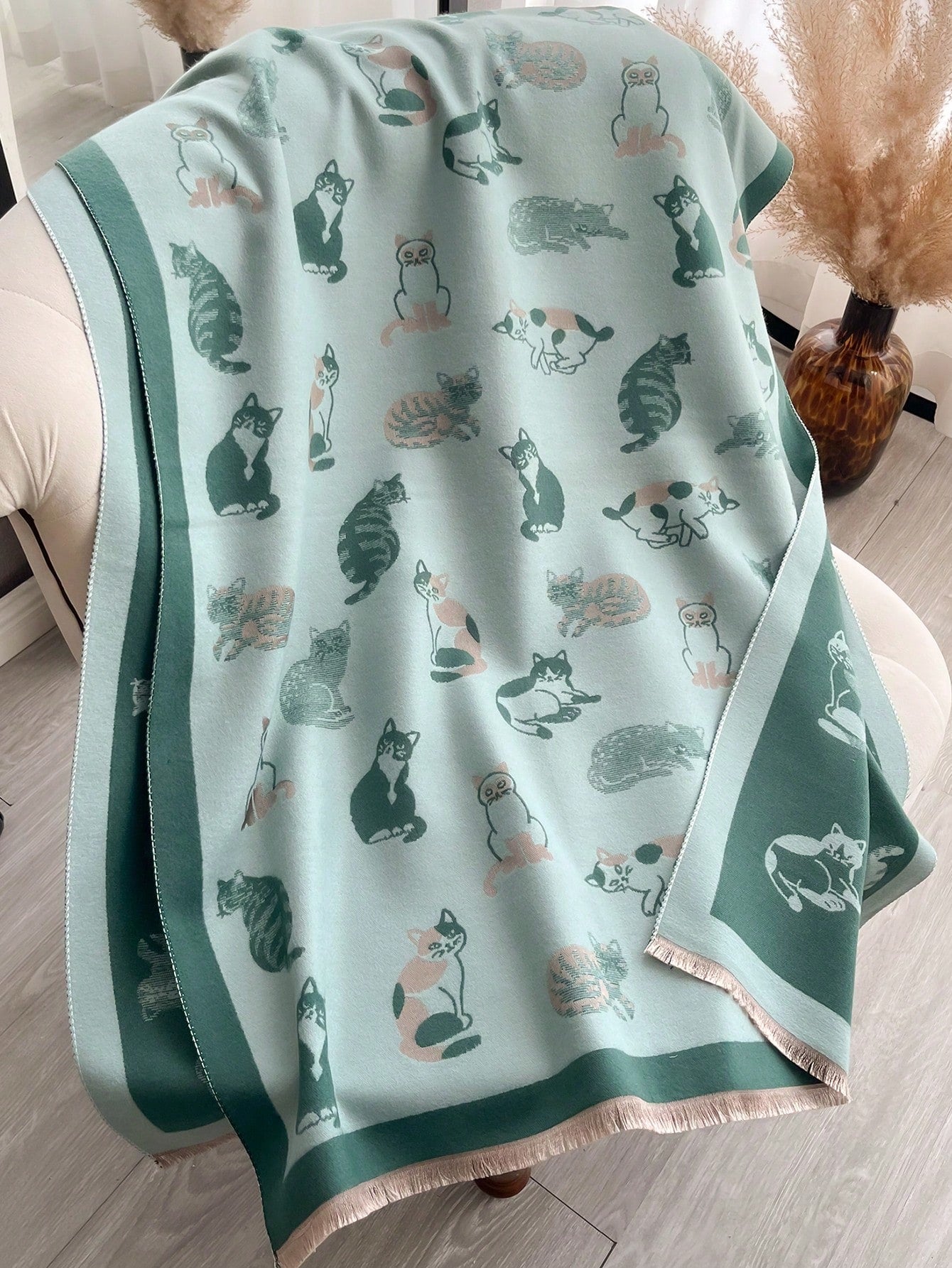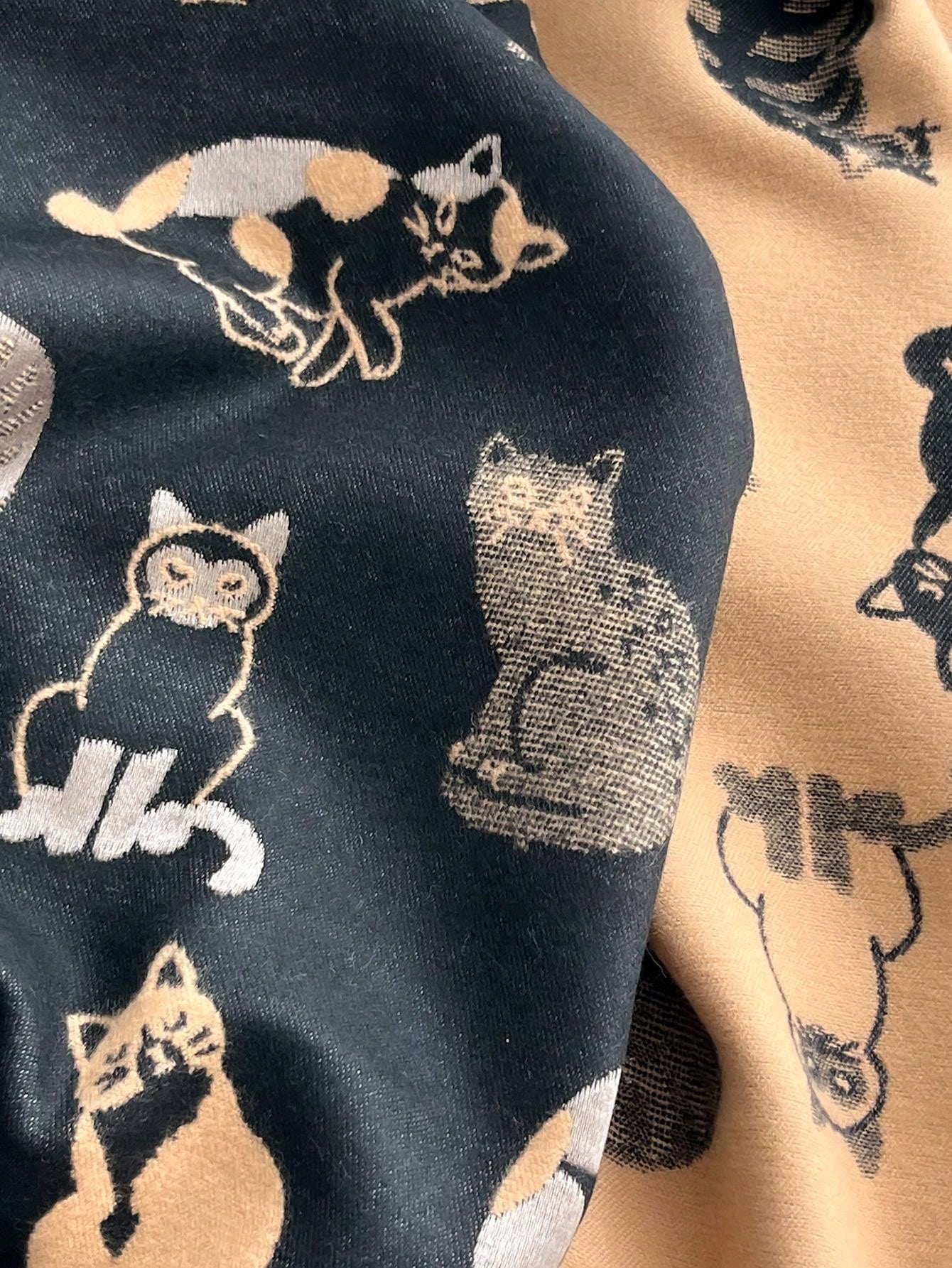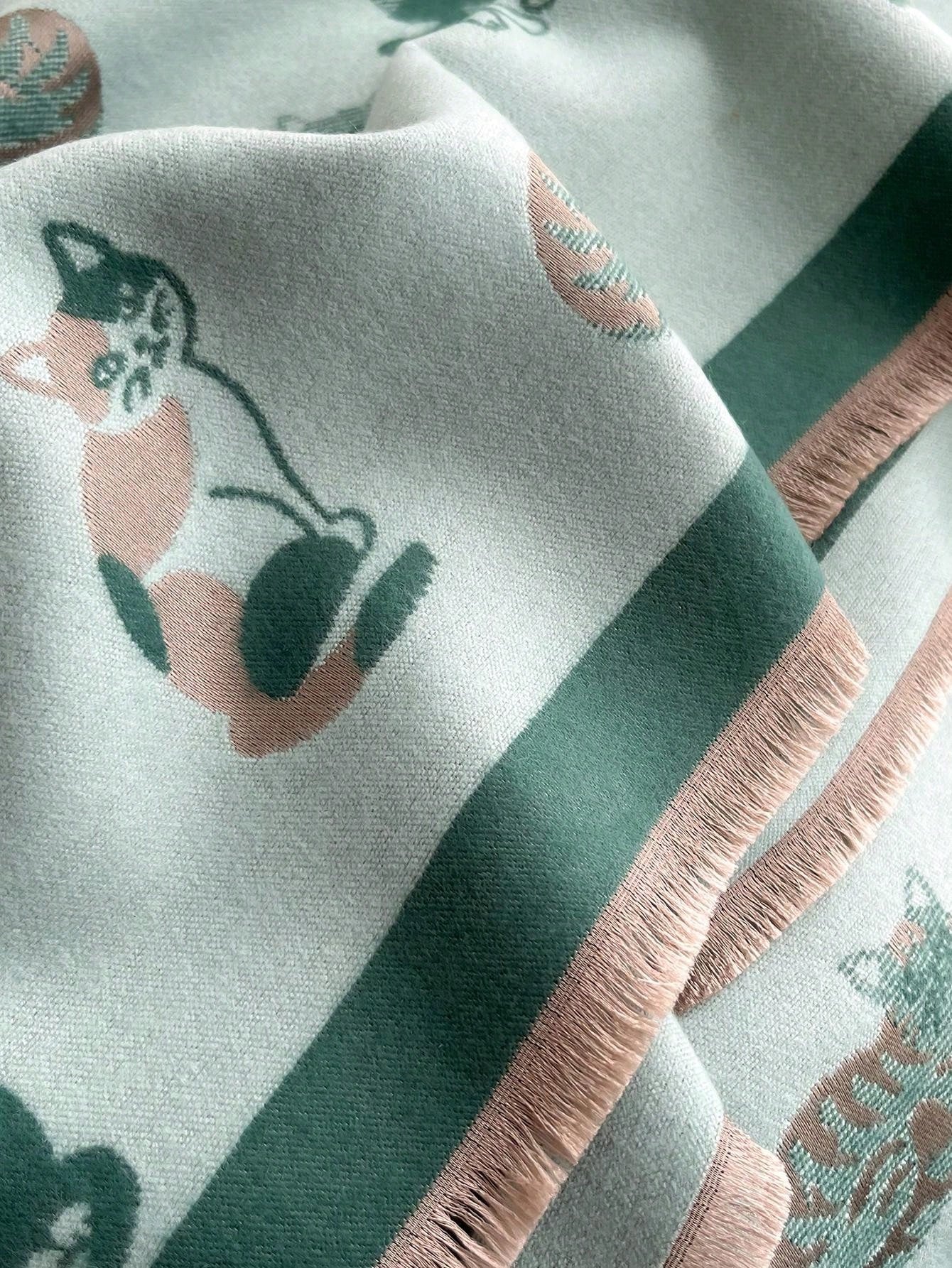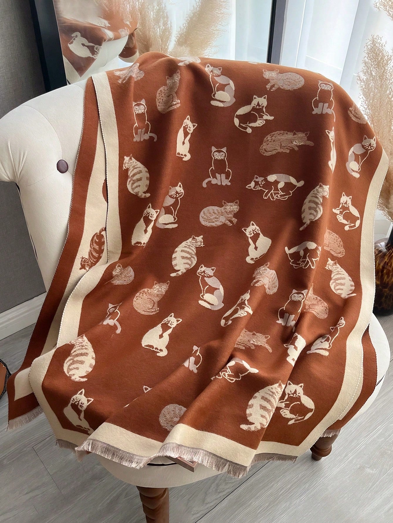 Charming Cat Jacquard Scarf: Cozy Faux Cashmere Accessory for Autumn/Winter