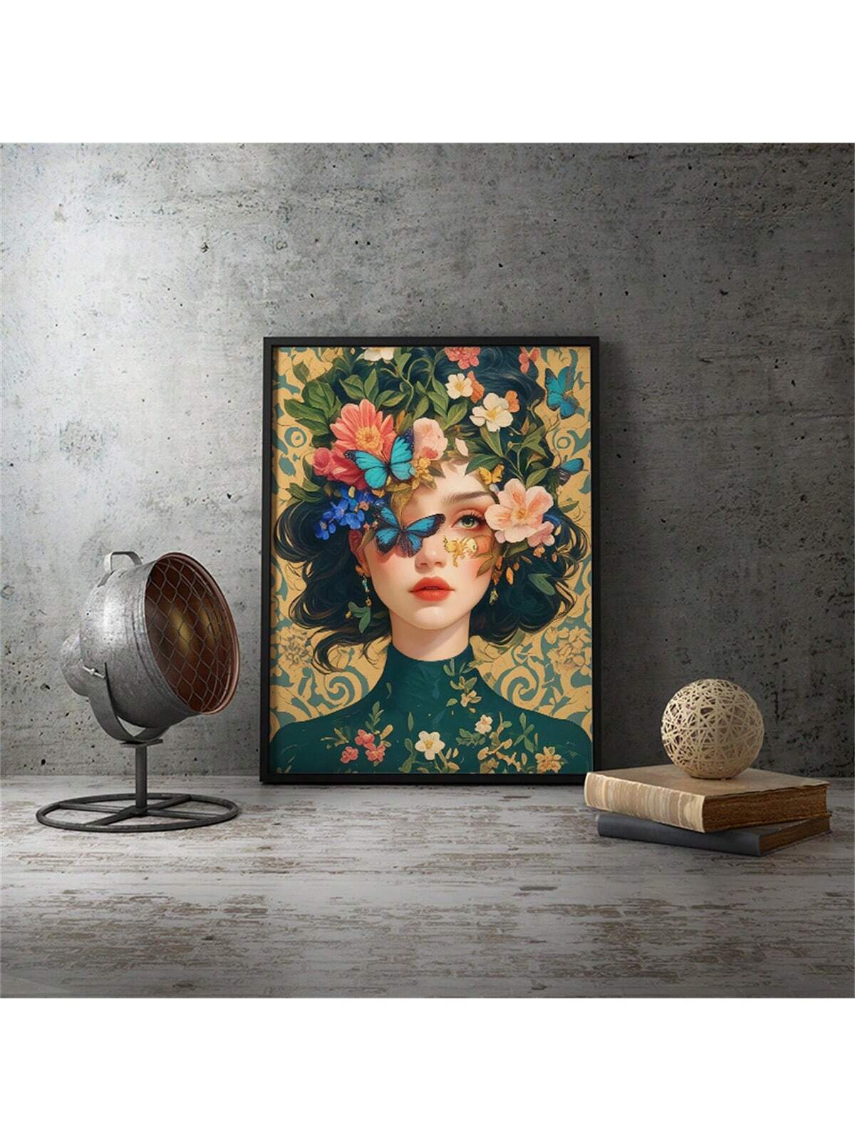 Charming Floral and Butterfly Woman Canvas Art: Vibrant Wall Décor for Any Space