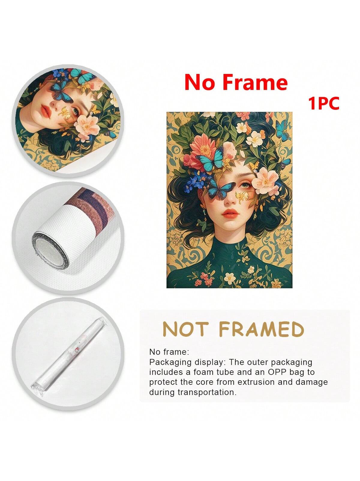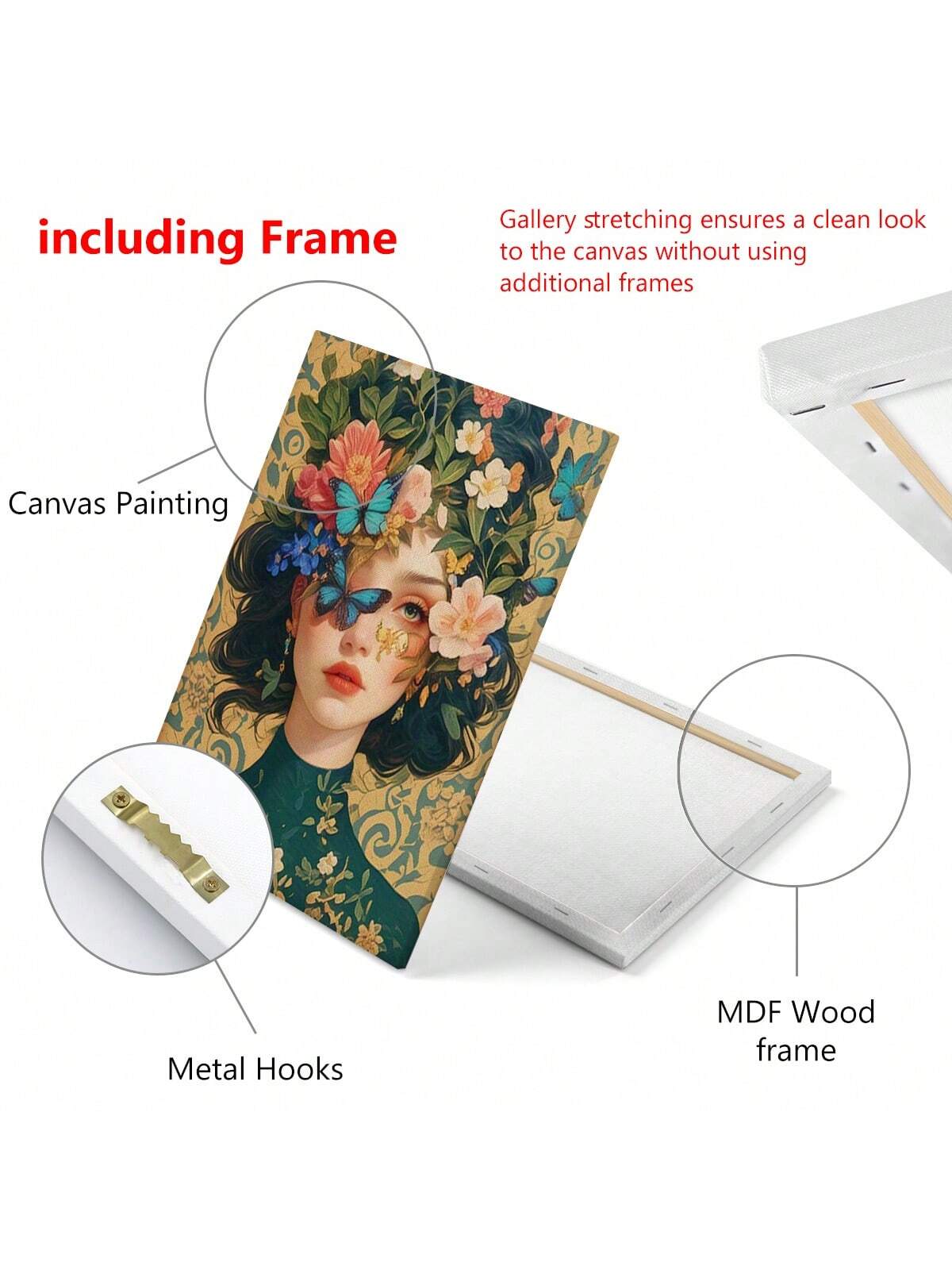 Add a pop of color to any room with this charming floral and butterfly woman canvas art! The vibrant design will instantly liven up your space, making it perfect for any decor style. Transform your walls into a beautiful focal point with this playful and unique piece.