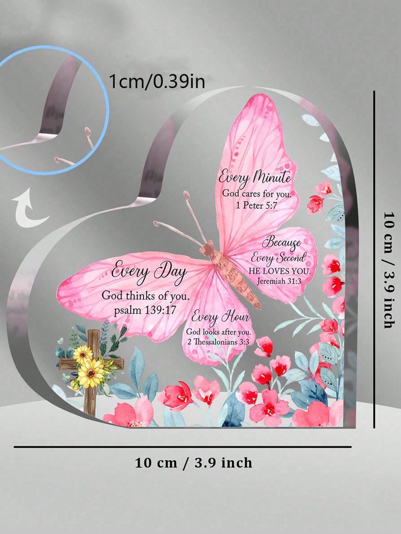 Brighten up your desk with this charming Pink Heart-Shaped Butterfly Figurine. Made of durable acrylic, it serves as both a delightful decoration and a source of inspiration. Perfect as a gift for your loved ones or yourself!