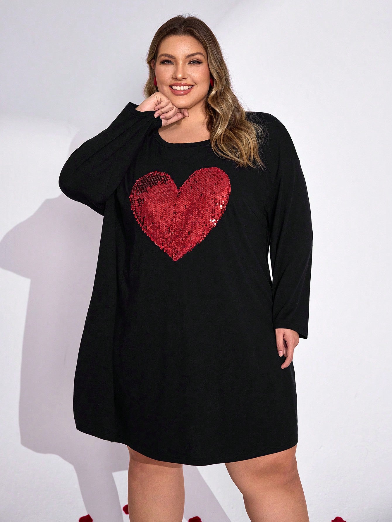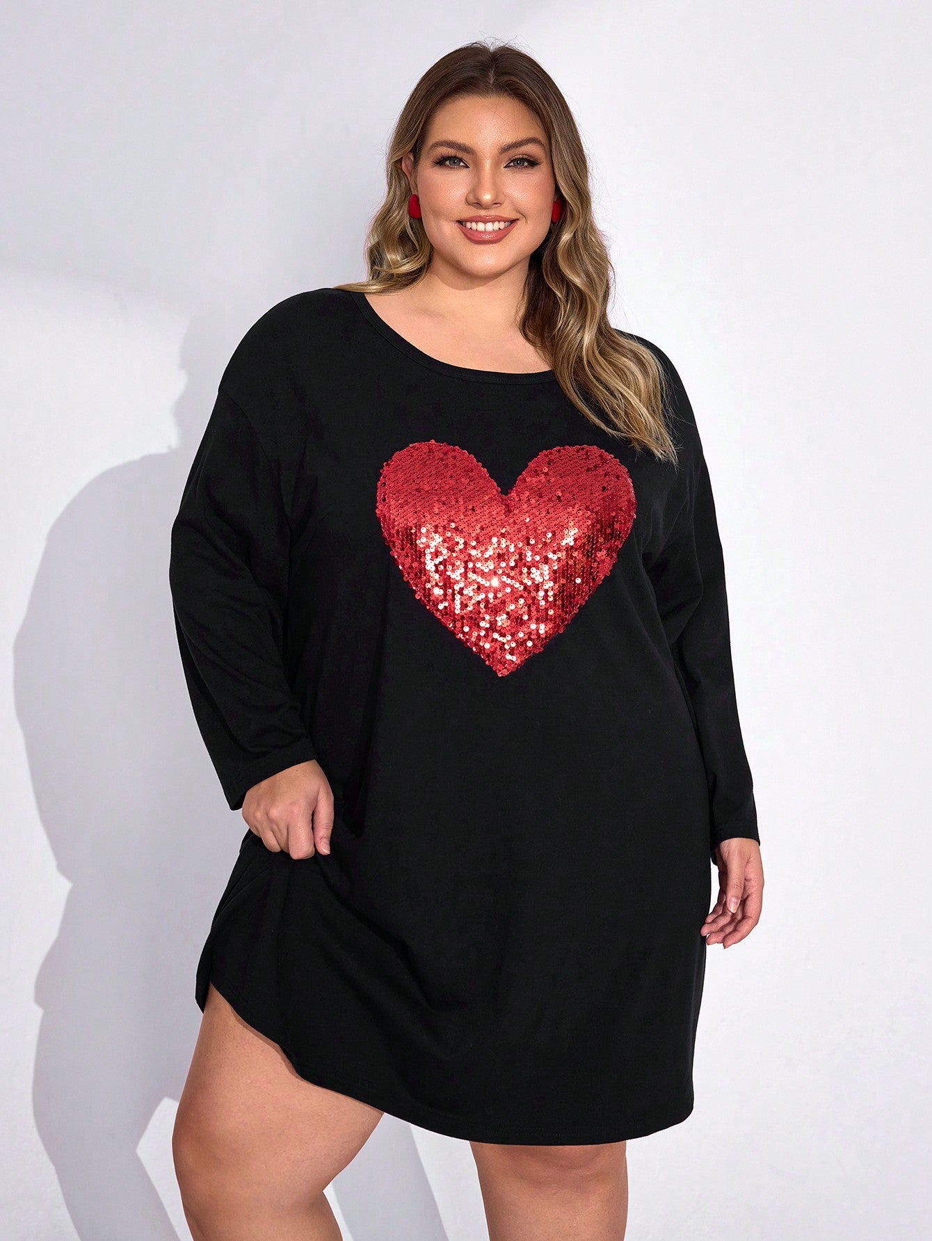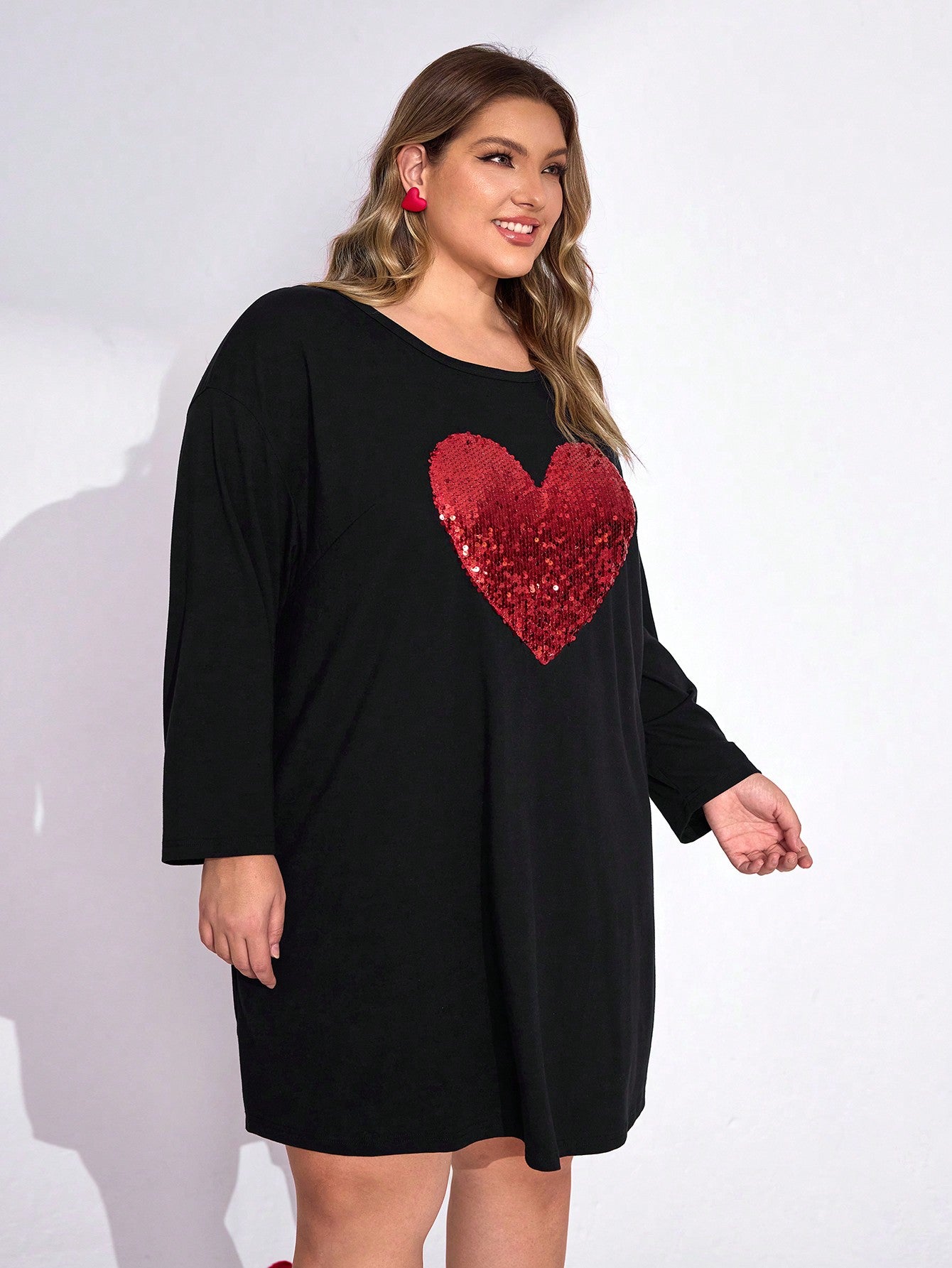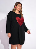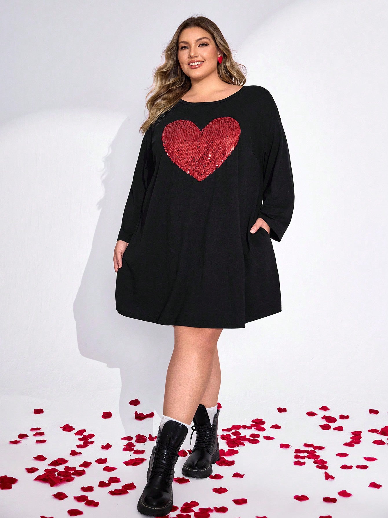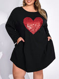 Charming Red Bead Heart Shaped Long Sleeve T-Shirt Dress with Pockets - Perfect for Valentine's Day!