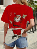 Cheerful Christmas Santa Print Crew Neck T-Shirt: A Fun and Casual Short Sleeve Top for Spring and Summer Women's Clothing
