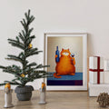 Cheerful Orange Cat With Wine Bottle And Glass, Humorous Cat Art Print, Playful Wine Lover Illustration