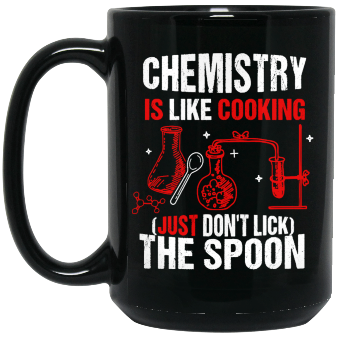 Chemistry Lover, Chemistry Is Like Cooking, Just Don't Lick The Spoon Black Mug