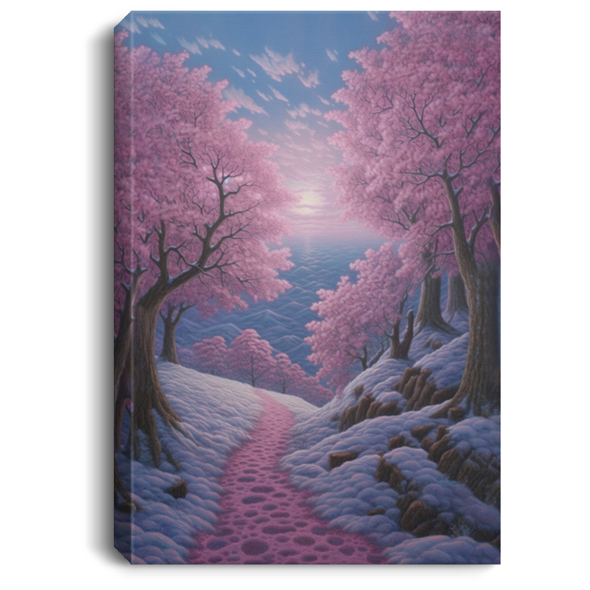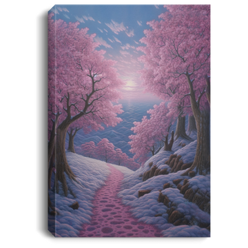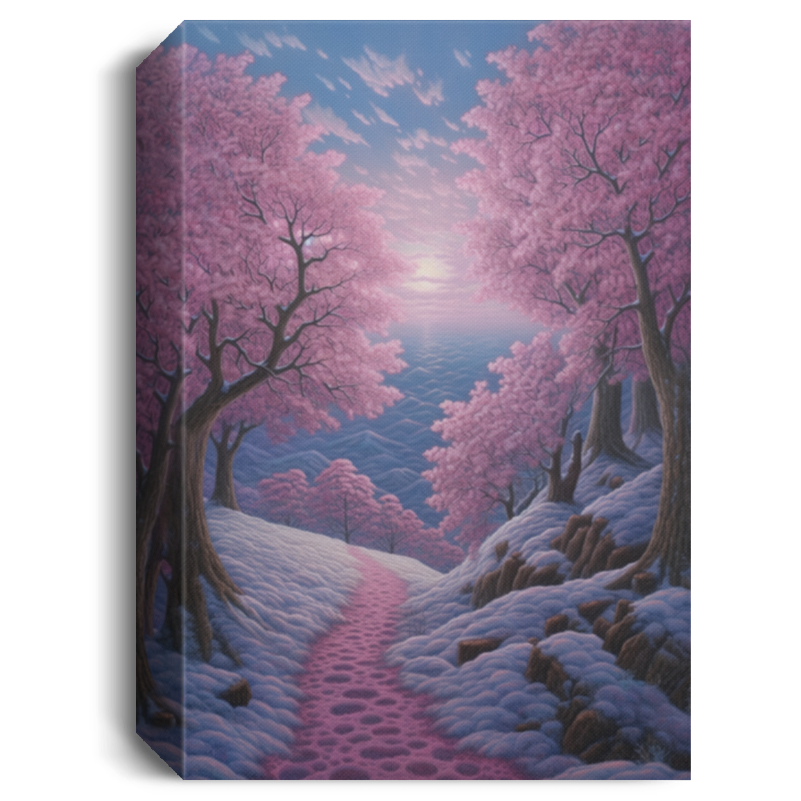 Cherry Blossoms In The Snow, Sakura Street, Pink Flower In Snow Season Canvas