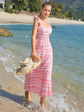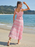 Chic and Casual: Pink Striped Print Ruffle Trim Dress