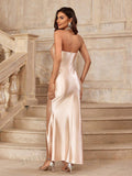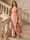 Chic and Classic: Women's Halterneck Sleeveless Dress with Pleated and Split Hem