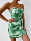 Chic and Cozy: Plaid Frill Trim Wrap Knot Side Tube Dress