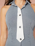 Elevate your everyday style with our Chic and Simple Open Shoulder Denim Dress. Featuring a modern open shoulder design, this dress adds a touch of femininity to any outfit. Crafted from high-quality denim, it offers both style and comfort. Perfect for any occasion, this dress is a must-have for fashion-forward women.